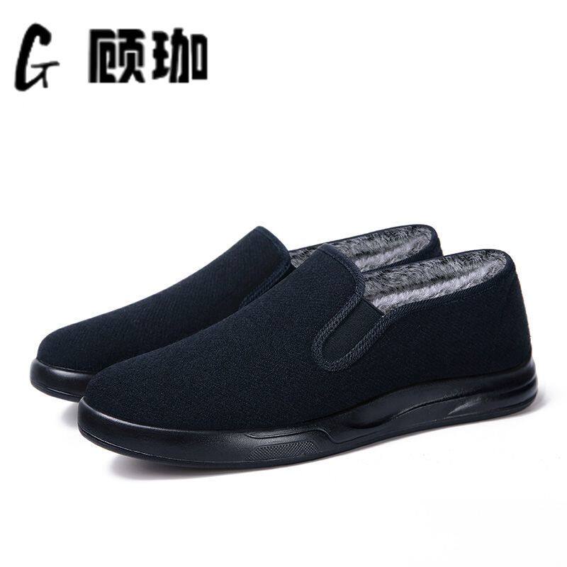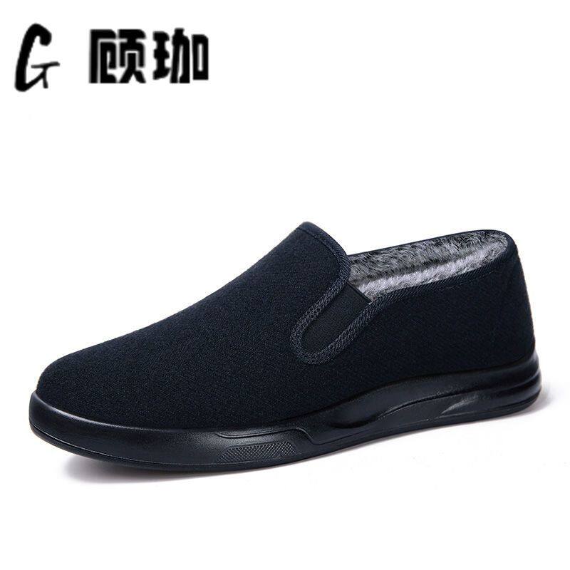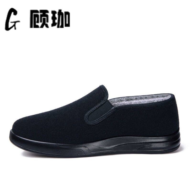老北京布鞋男棉鞋黑色传统布鞋一脚蹬爸爸鞋加绒保暖冬季男鞋