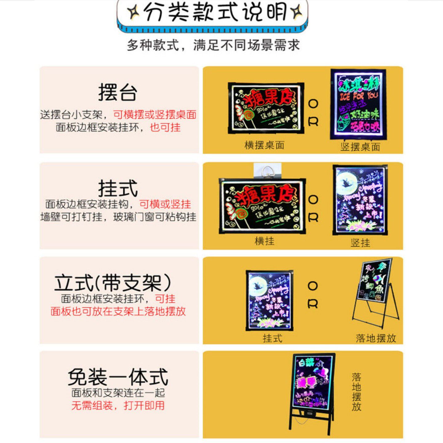 荧光板广告板立式摆摊小黑板充电灯箱挂墙式店铺用门口闪发光挂牌