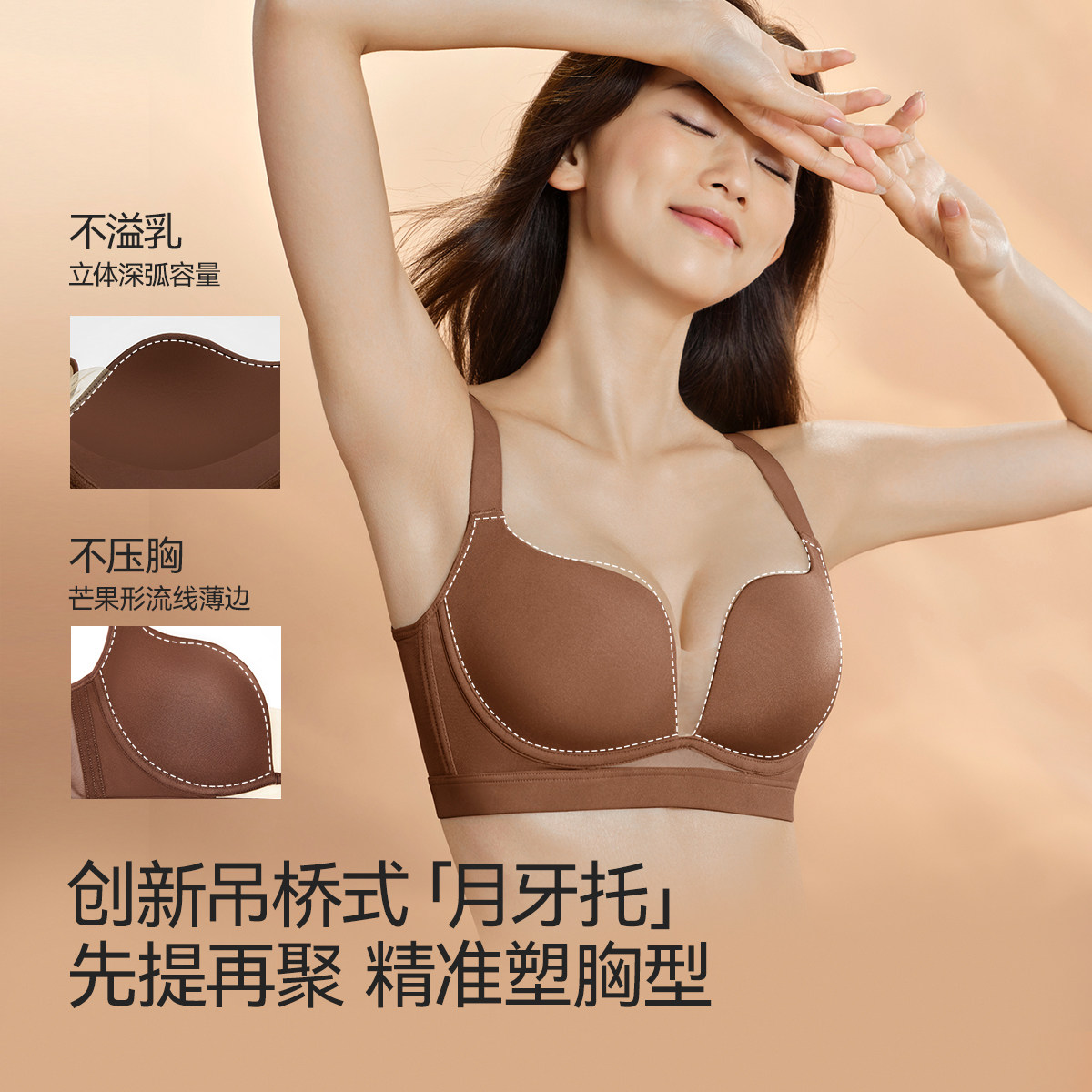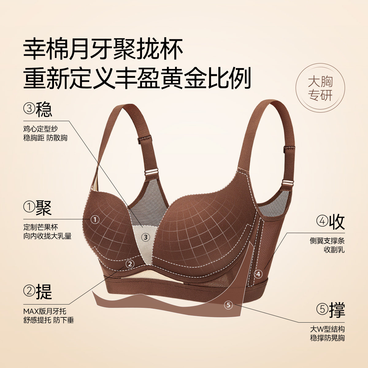 华熙玻尿酸菇娘家软支撑内衣大胸聚拢收副乳防下垂无痕粉底液文胸