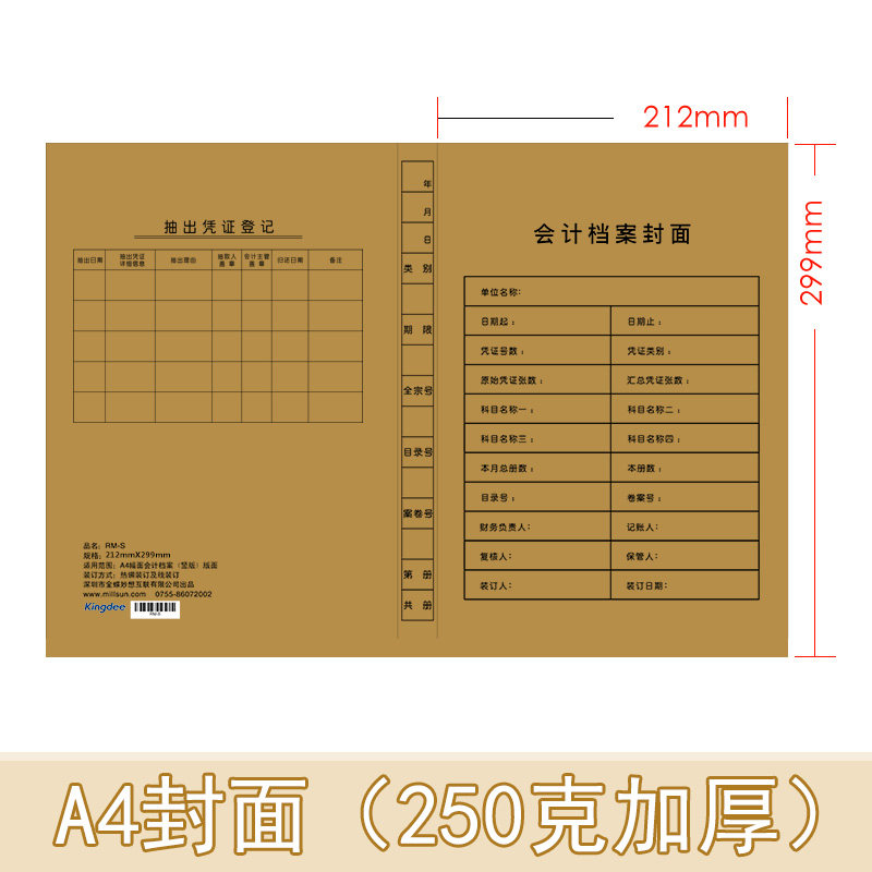 金蝶财务软件软件通用a4凭证封面 RM-S会计凭证封面a4 竖版212*299mm