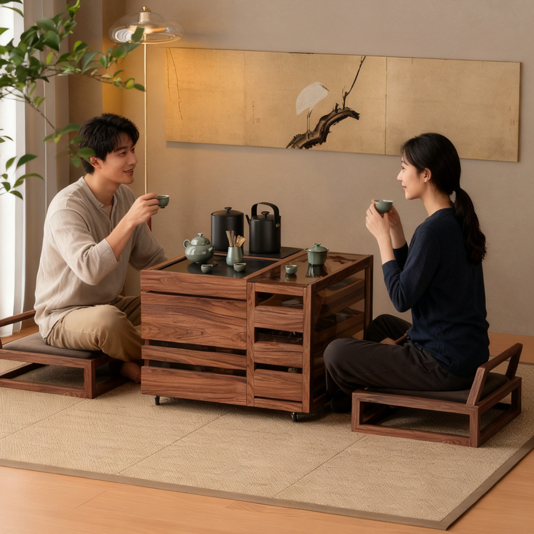 木小咖叁森客厅实木茶几可移动茶桌带烧水一体茶台阳台多功能边柜