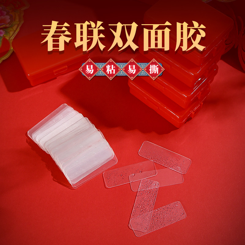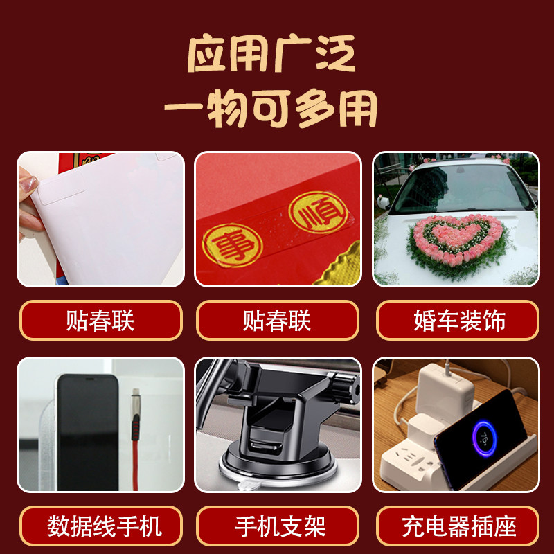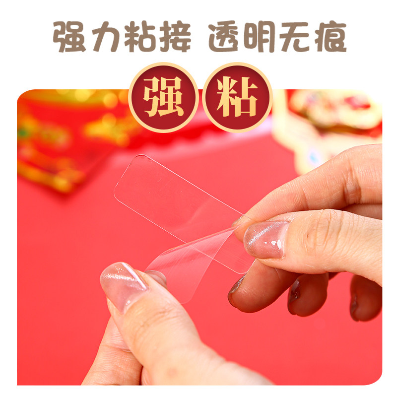 无痕贴春联双面固定神器对联专用胶盒装透明无痕高粘度自粘婚庆婚车喜字气球装饰隐形贴撕下不残留纳米胶片贴