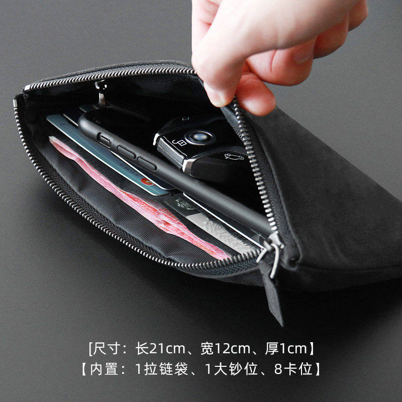 简约男士手拿包轻奢休闲钱包男包皮具信封包翻毛皮时尚潮流小手包