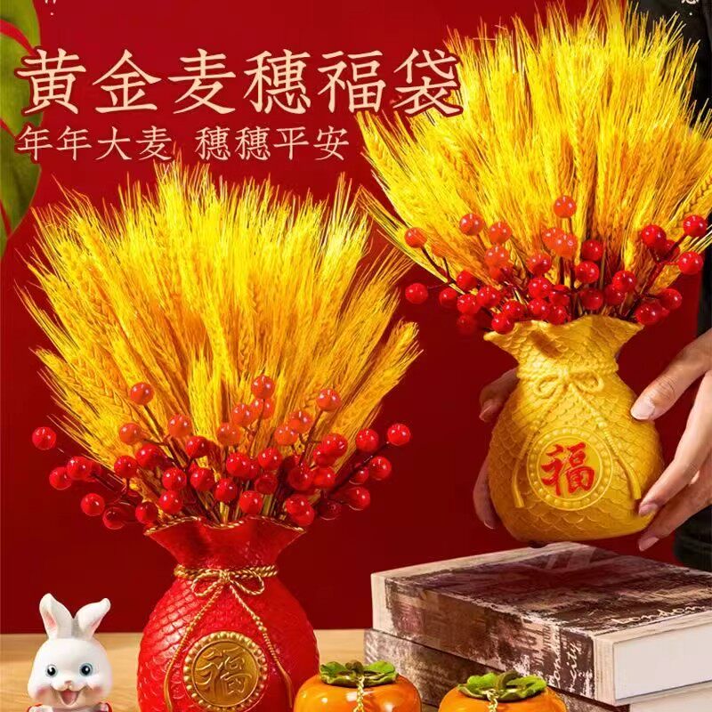 天然黄金大麦干花束福袋钱袋子客厅摆设件金黄麦穗装饰乔迁仿真花