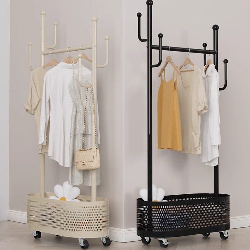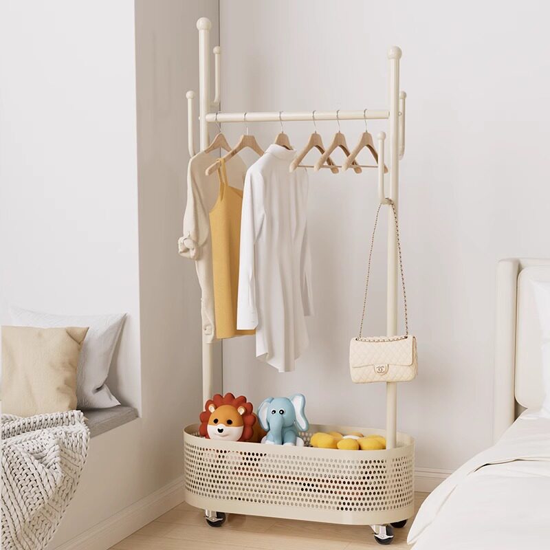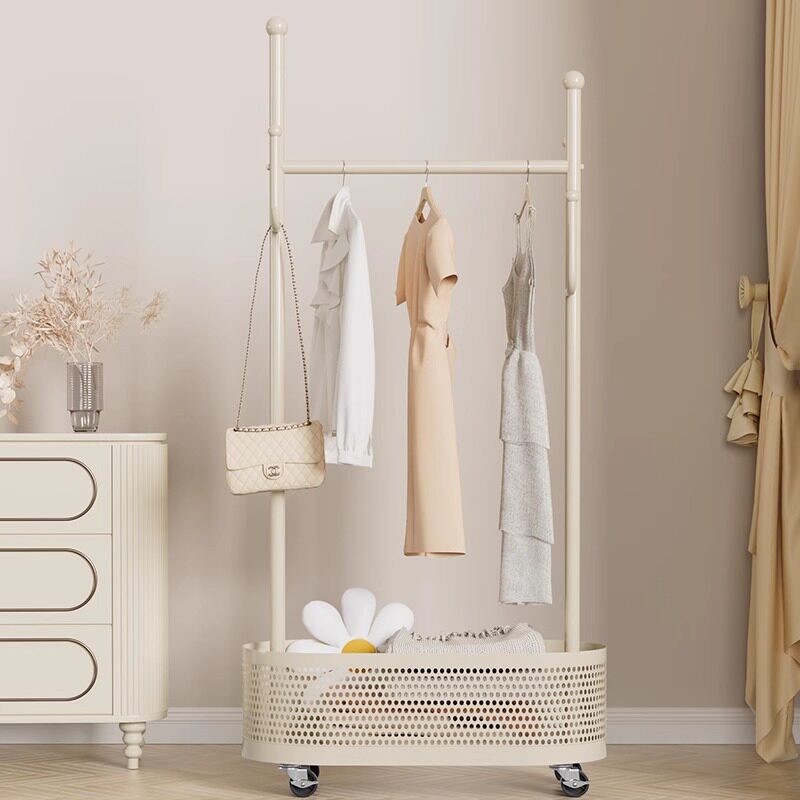 衣架落地卧室奶油风挂衣架家用铁艺简易晾衣架室内客厅移动衣帽架