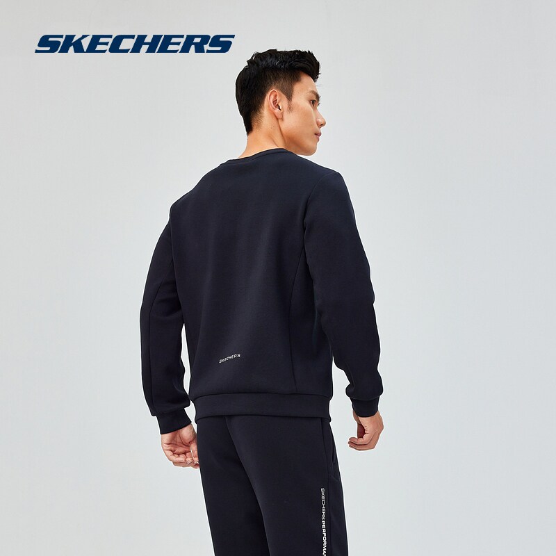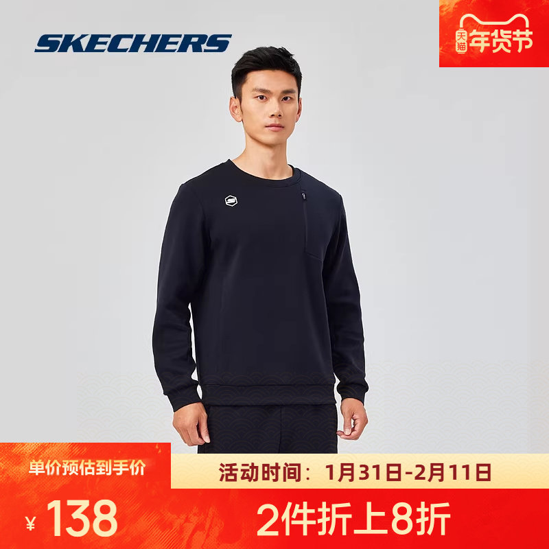 斯凯奇新品男士运动卫衣圆领设计针织套头衫弹力顺滑轻盈时尚前沿