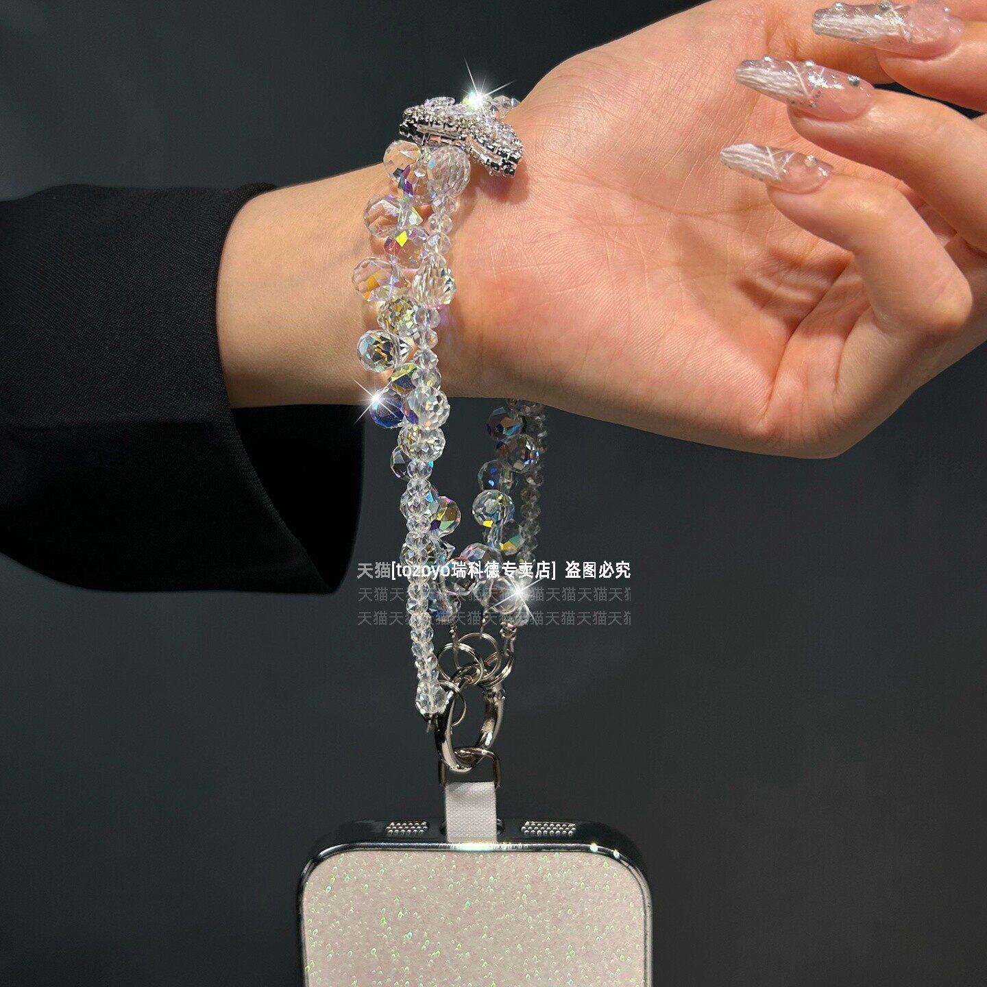 奢华高级感水晶手提链条手腕短挂绳带夹片壳钥匙扣包包挂件潮