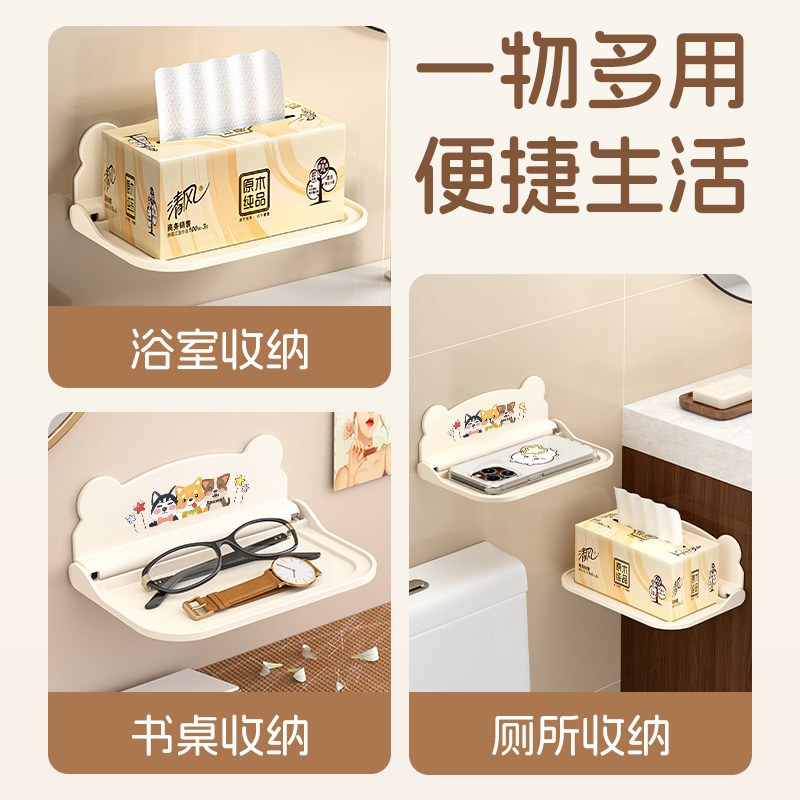 强力承重可折叠壁挂置物架浴室厕所床头手机免打孔宿舍收纳架