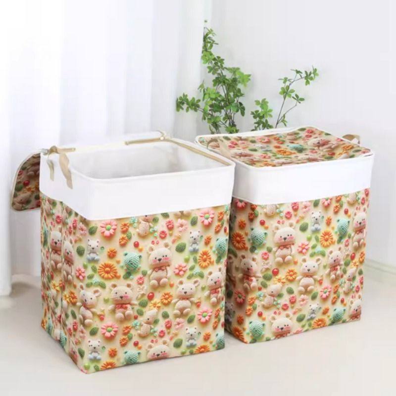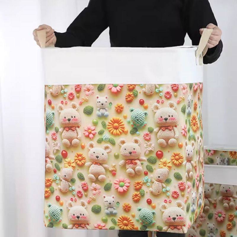 布艺120升超大3D立体收纳袋双拉链带盖毛线熊被子整理箱防潮收纳