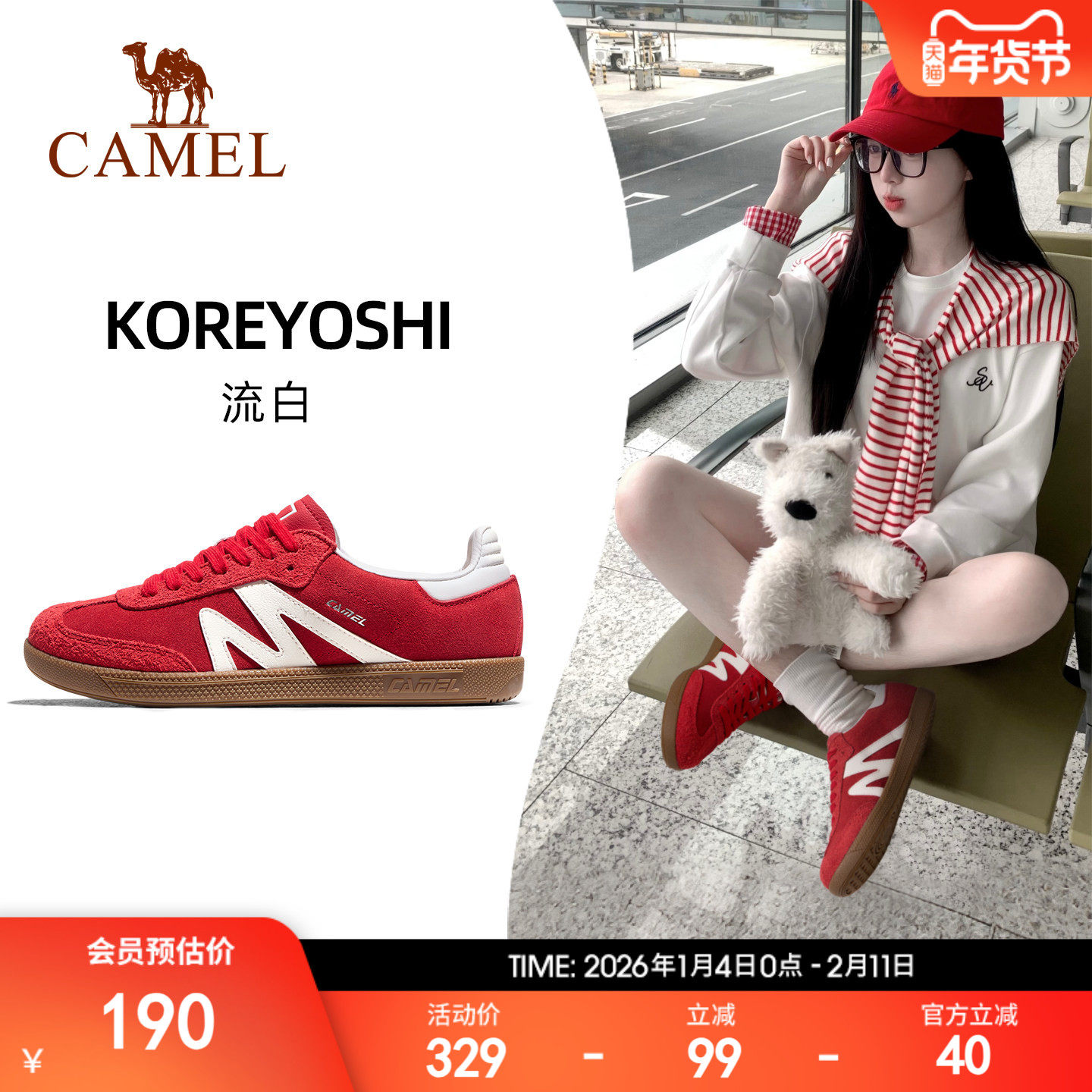 骆驼板鞋女款新款平底小白鞋时尚复古休闲鞋T头鞋百搭德训鞋女鞋