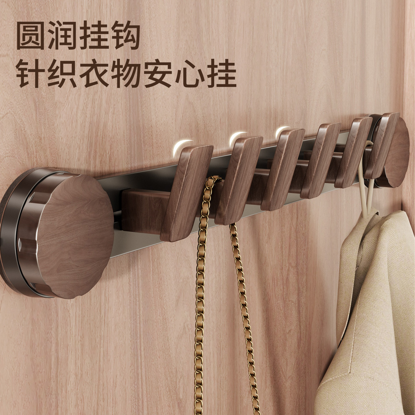 胡桃木吸盘门后挂钩挂衣架免打孔墙上壁挂入户门置物架挂衣钩衣柜