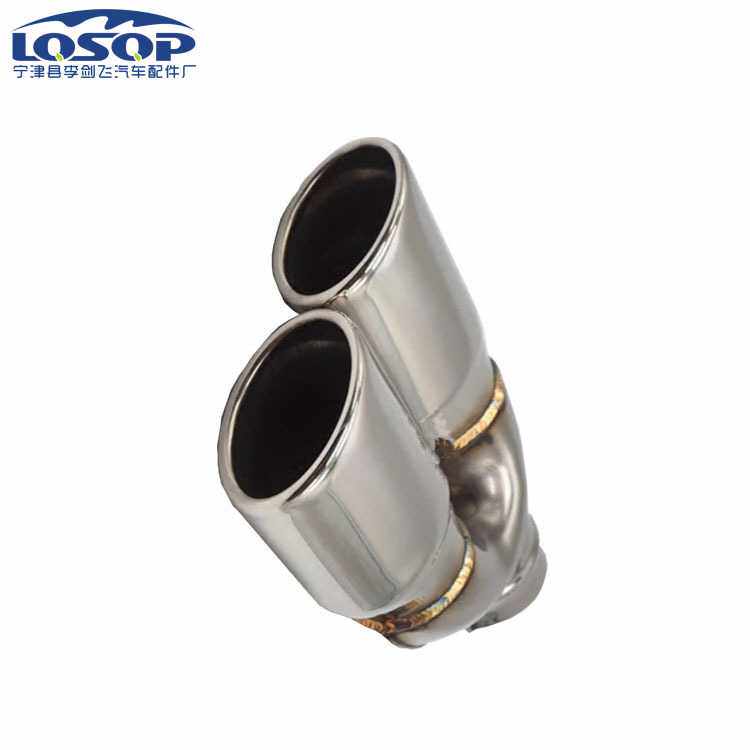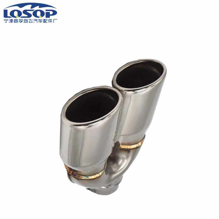 厂家直供焊接汽车改装尾喉 尾咀椭圆双管一出二通用款可配件