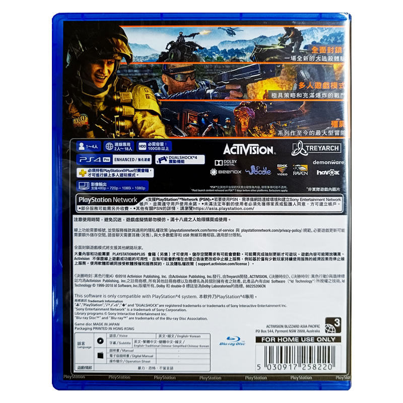 香港直邮 港行中文原封 PS4游戏光盘 使命召唤15 黑色行动4 全程联网游戏 需会员 PS4游戏 现货