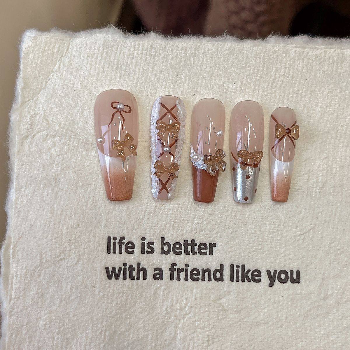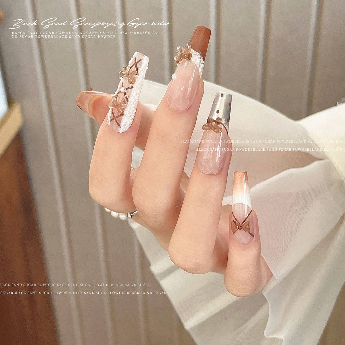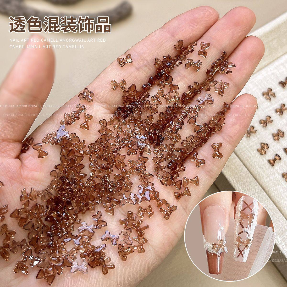 新款透色混装美甲饰品蝴蝶结飘带香槟酒红色迷你百搭穿戴甲装饰品