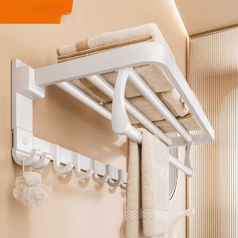 卡贝白色毛巾架免打孔卫生间太空铝浴巾架浴室置物架子五金挂件