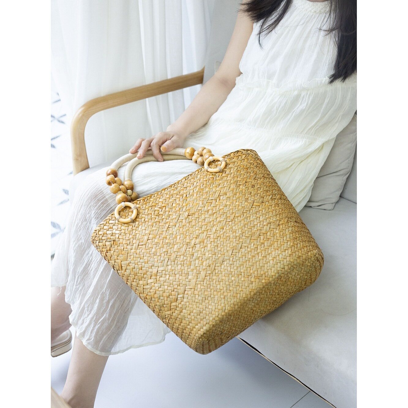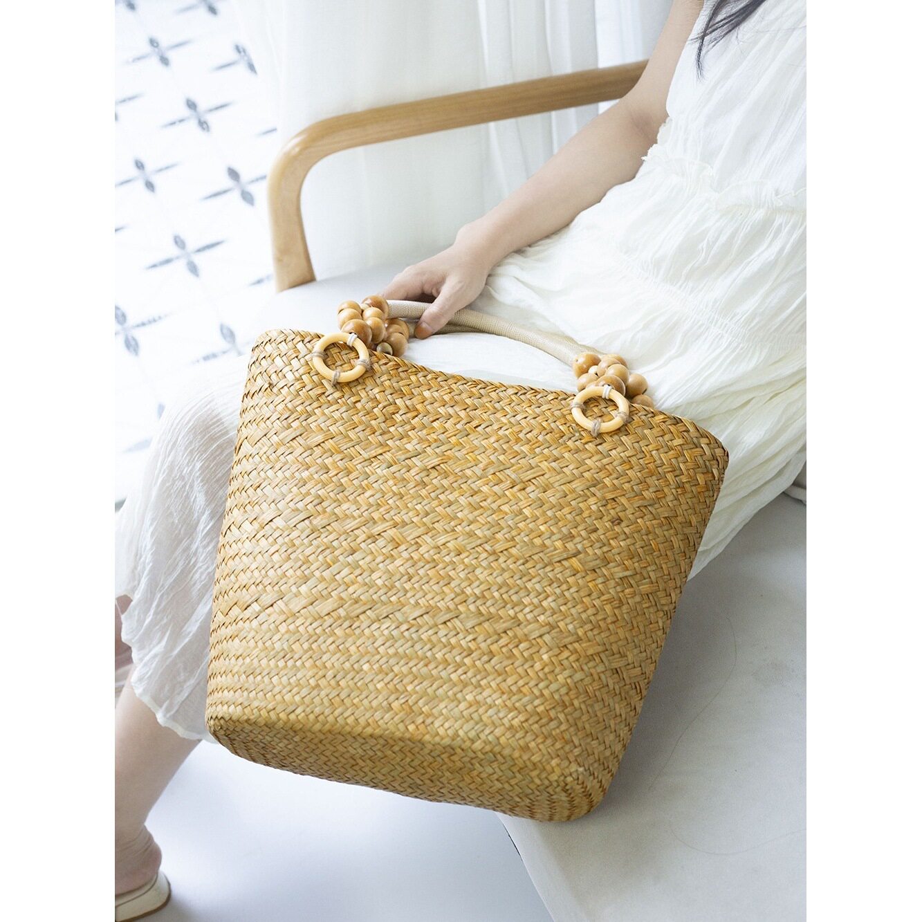 百搭简约单肩草编包新款大容量草包编织包托特包女海边度假沙滩包