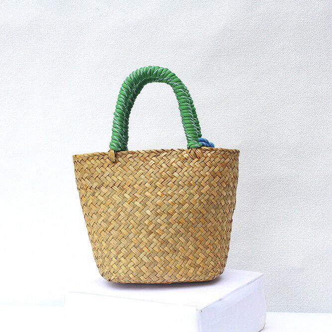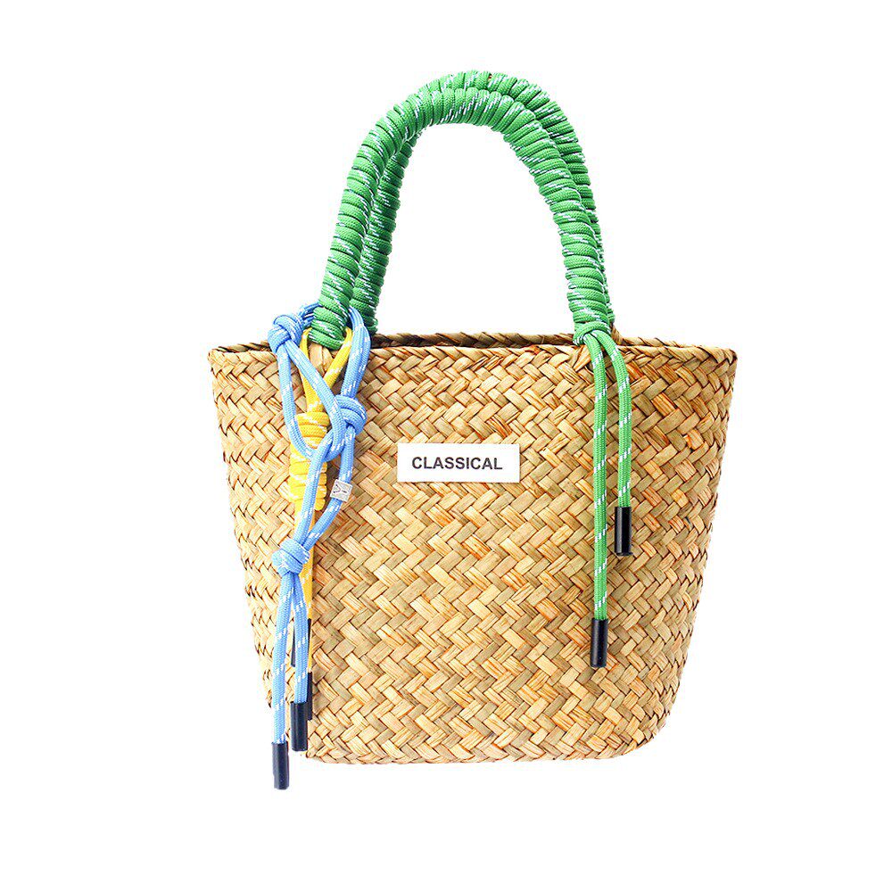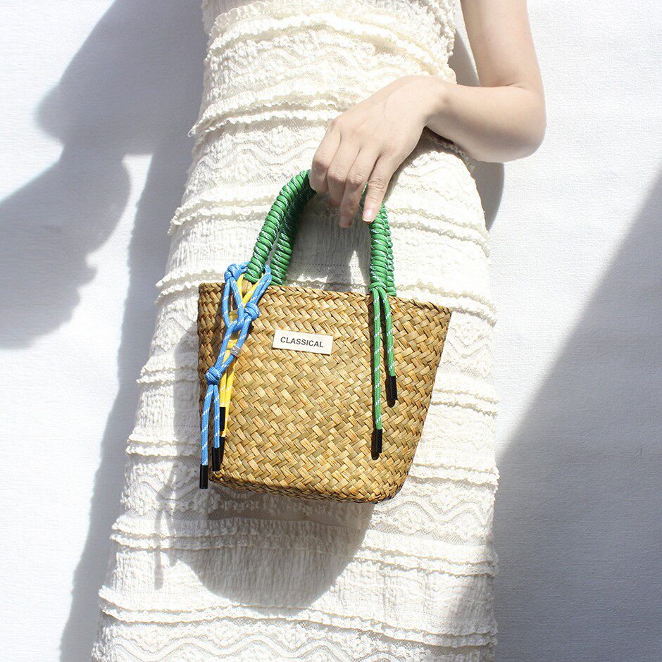 新款草编包大容量单肩编织包手工编织尼龙绳挂饰女草编手提包女包