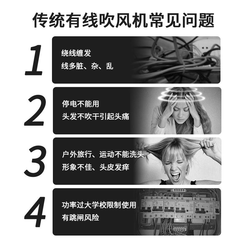 欧莱诗USB无线吹风机学生宿舍专用不插电冷热风高速大风力充电式