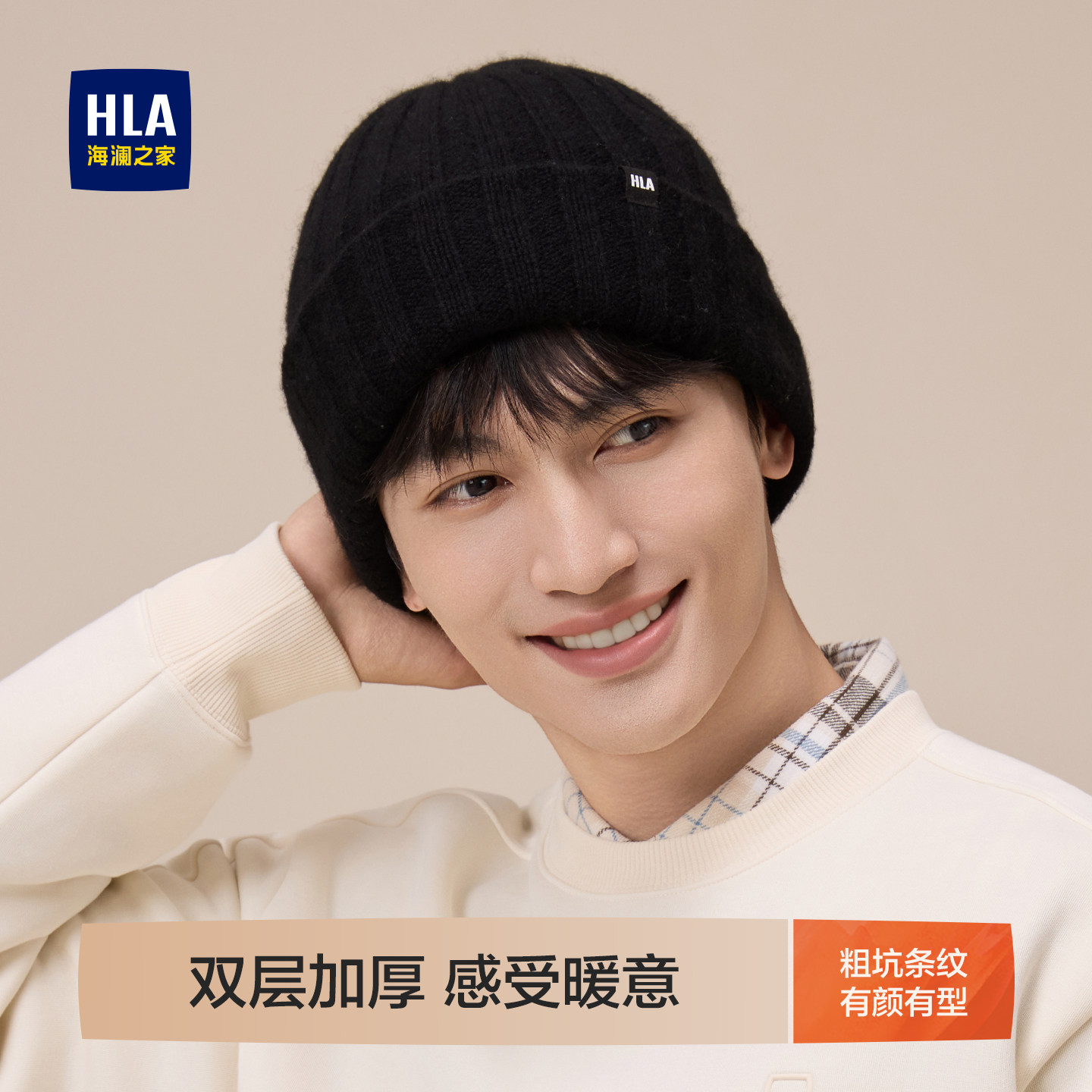 海澜之家针织帽男士秋冬骑行电动车防风防寒保暖毛线帽纯羊毛帽子