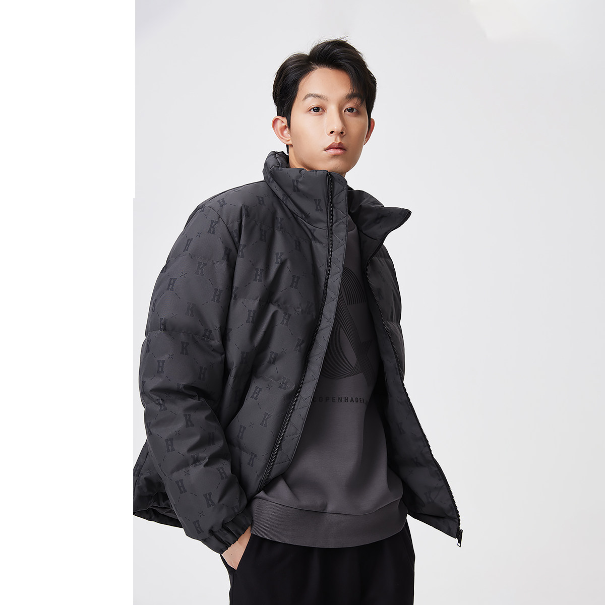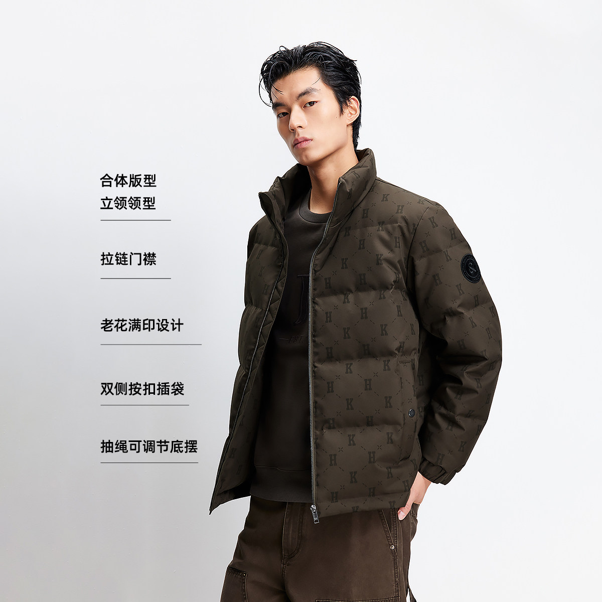 杰克琼斯男装冬季新款云朵泡芙羽绒服老花满印排骨短款面包服外套