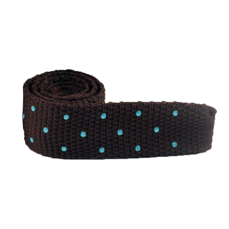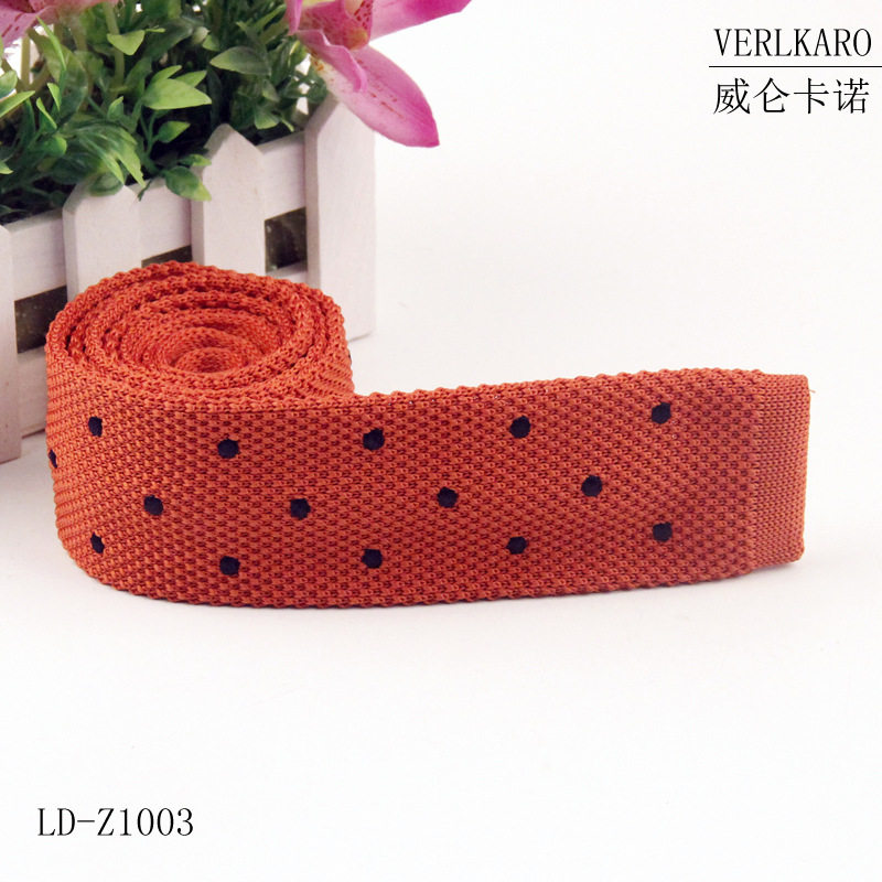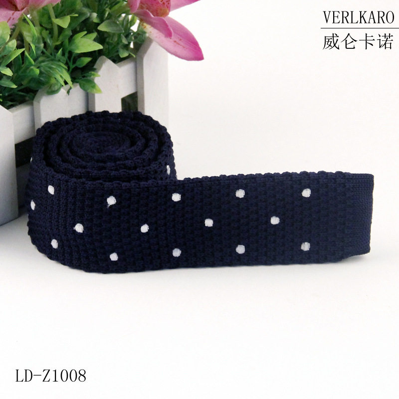 纯色涤纶丝针织平头型窄版毛线绣花领带长期现货批发商务休闲男士