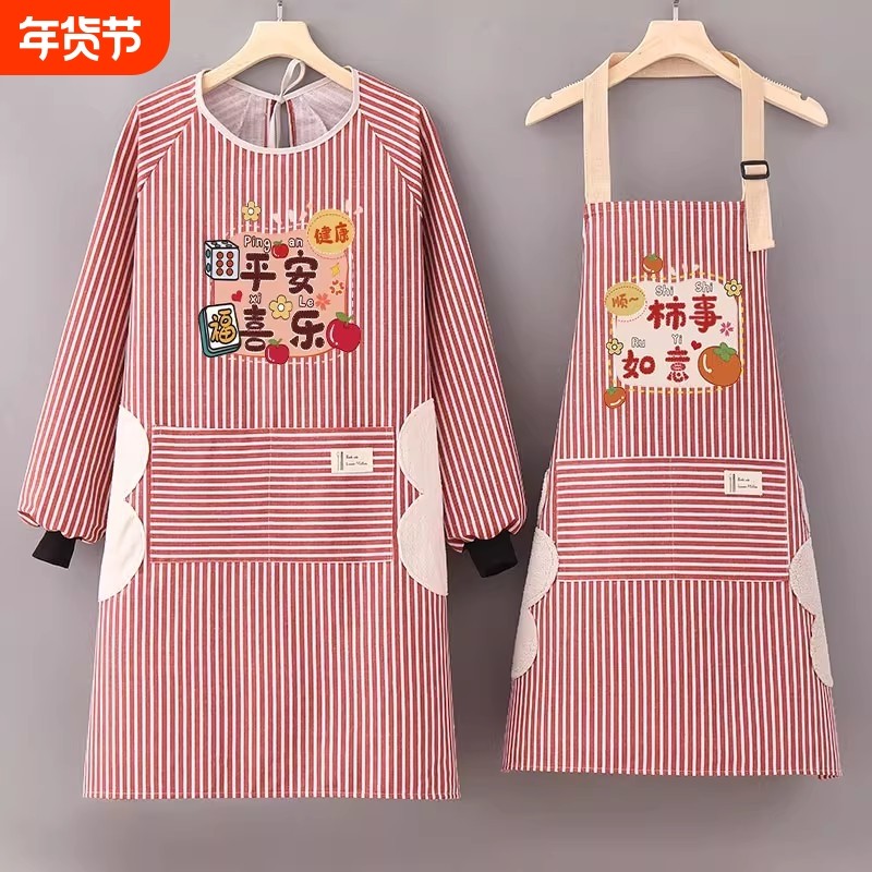 新款棉布耐磨围裙长袖厨房家用防污罩衣透气围腰做饭上班工作服女