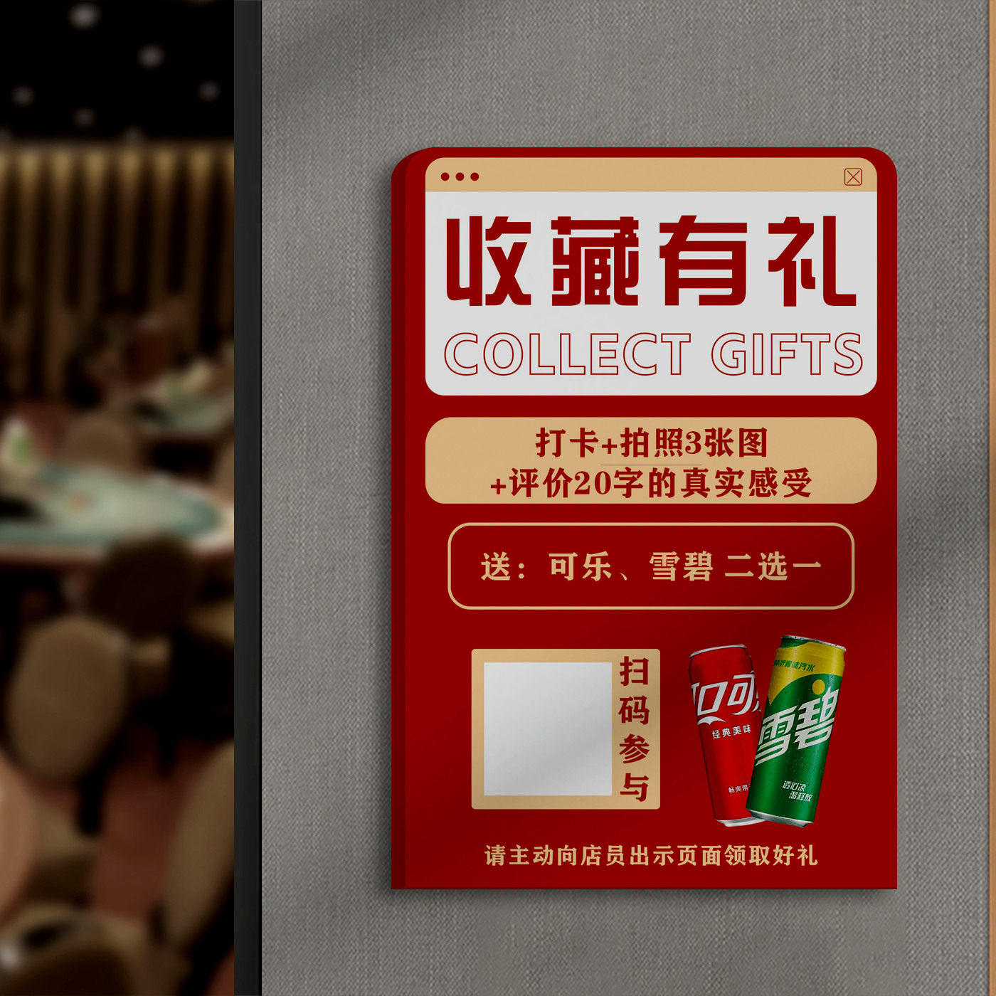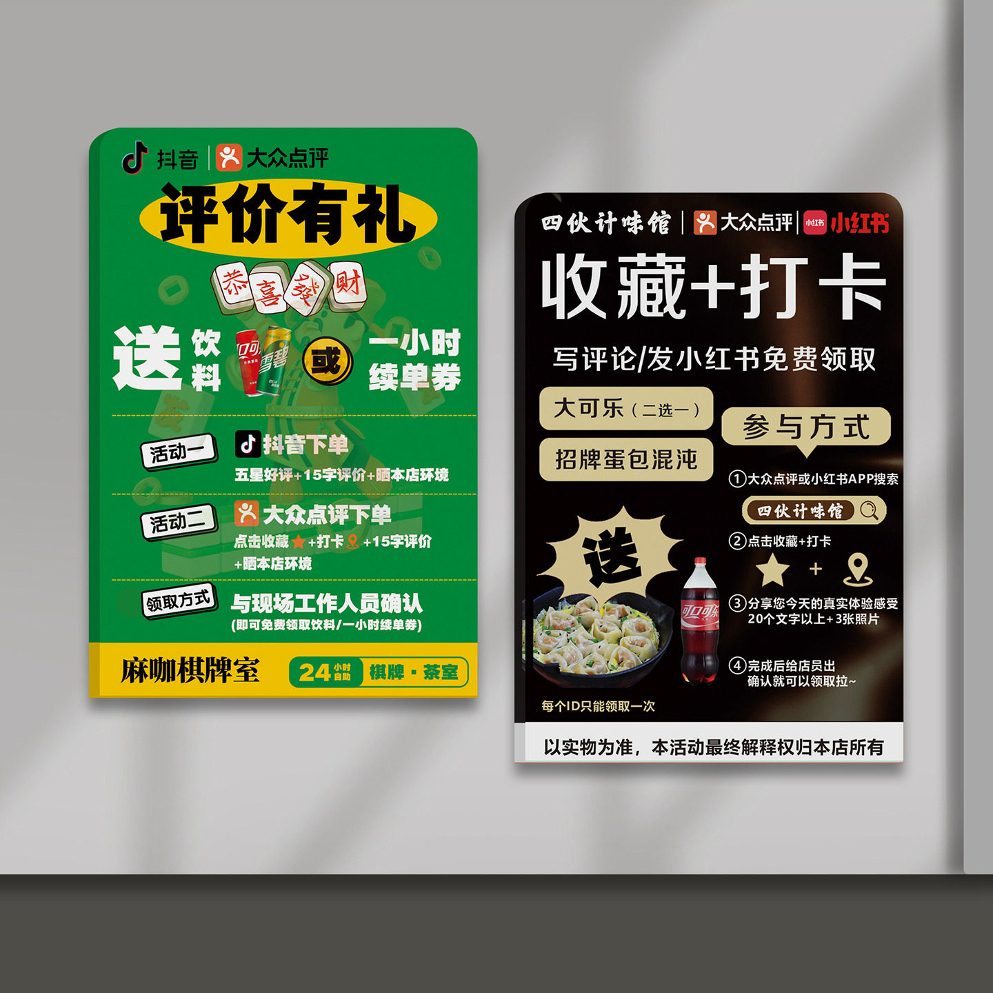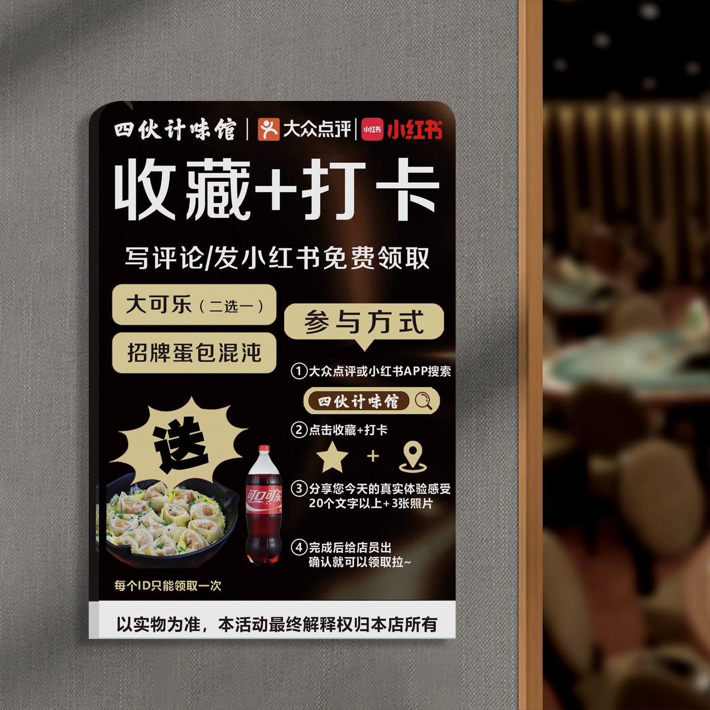 餐饮美食大众收藏打卡牌印刷封面墙贴写真评价有礼茶餐厅