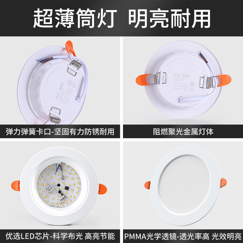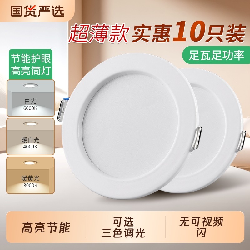 LED筒灯嵌入式家用射灯天花灯三色变光客厅吊顶孔灯洞灯简灯开孔