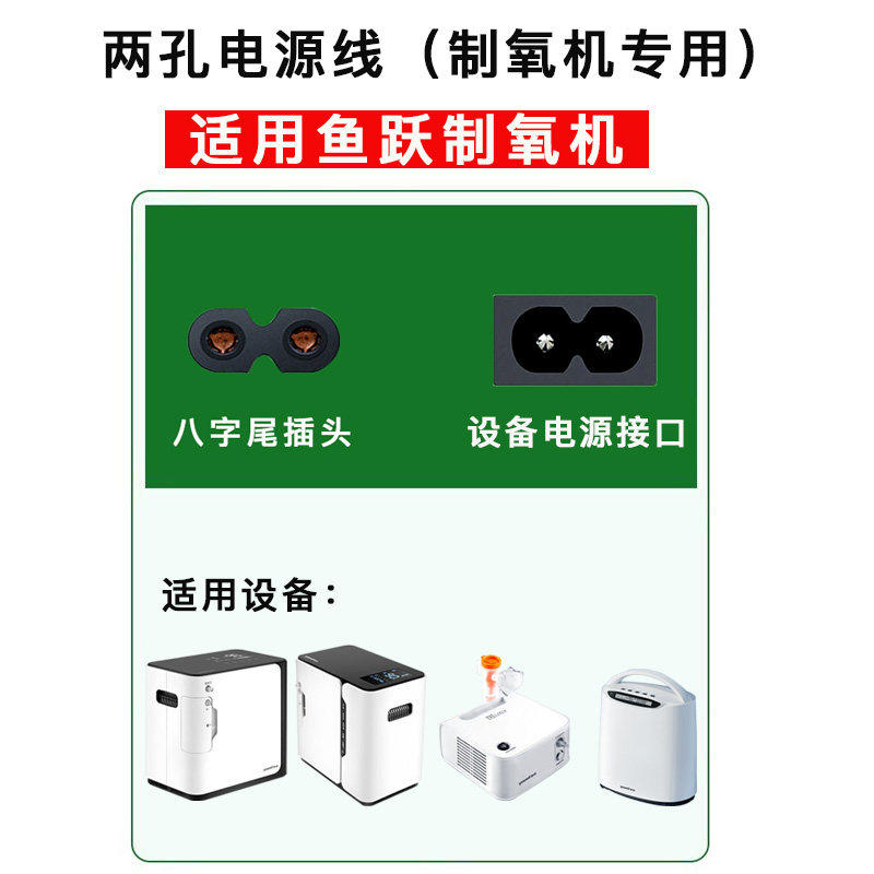 适用yuwell鱼跃制氧机雾化机电源线YU300/360/500/600/800雾化器403H家用吸氧机八字尾两孔供充电源适配器线