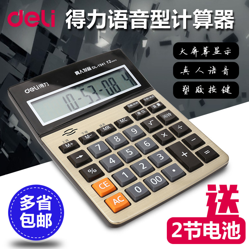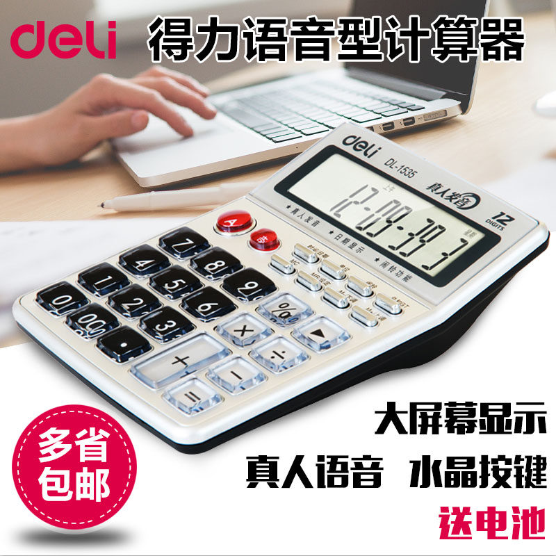 得力计算器带语音太阳能计算机多功能大屏大按键办公用品学生用财务会计专用考试大号真人发音迷你小号便携