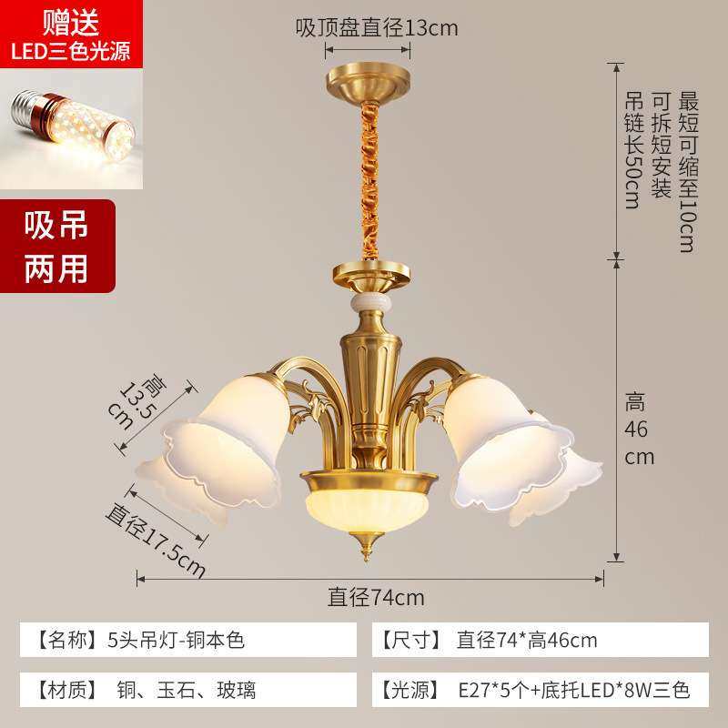 美式复古全铜吊灯客厅灯主灯LED欧式书房卧室餐厅灯 吸吊两用 242