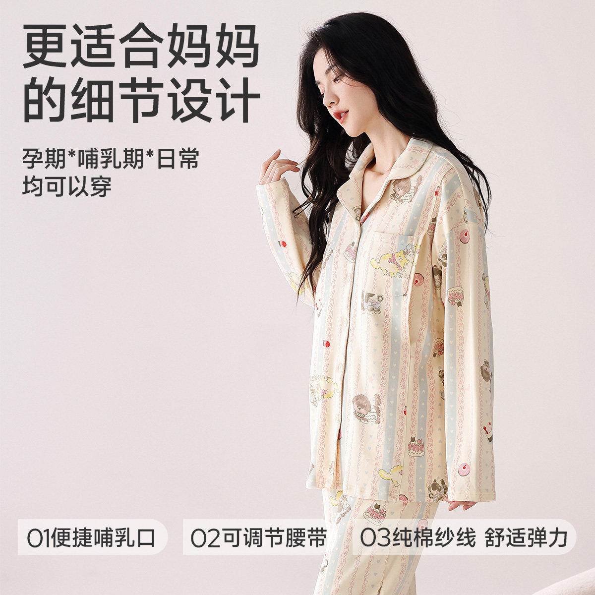 婧麒云慕丝月子服产后秋冬季纯哺乳家居服棉怀孕产妇孕妇睡衣套装