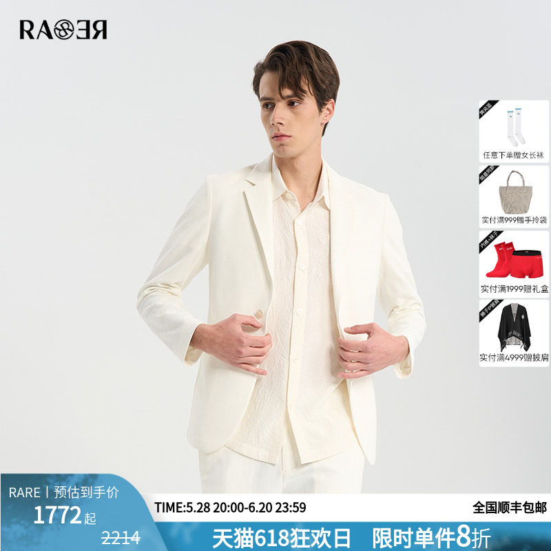 RARE威雅男装春夏款六边形凹凸肌理白色休闲西装套装西服外套
