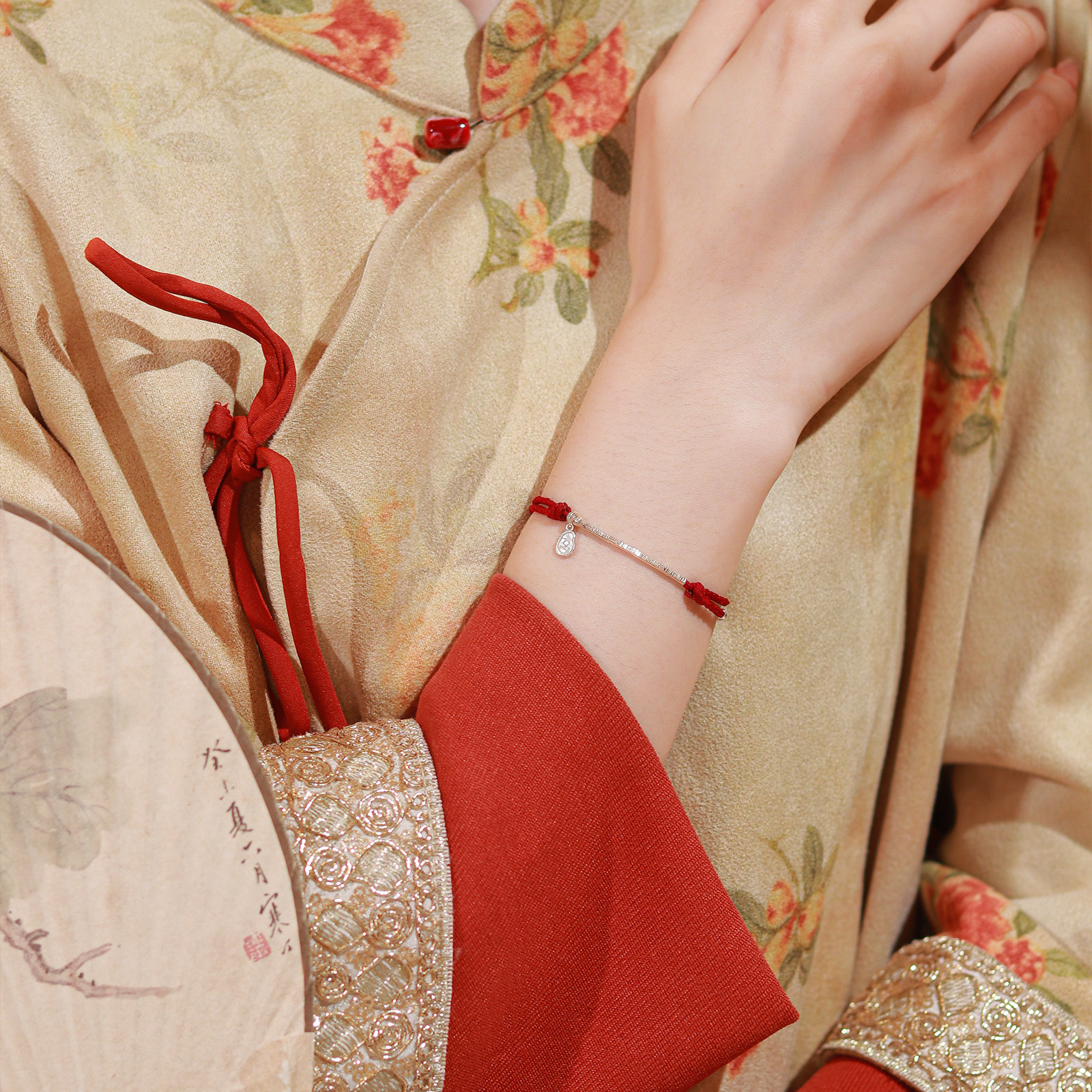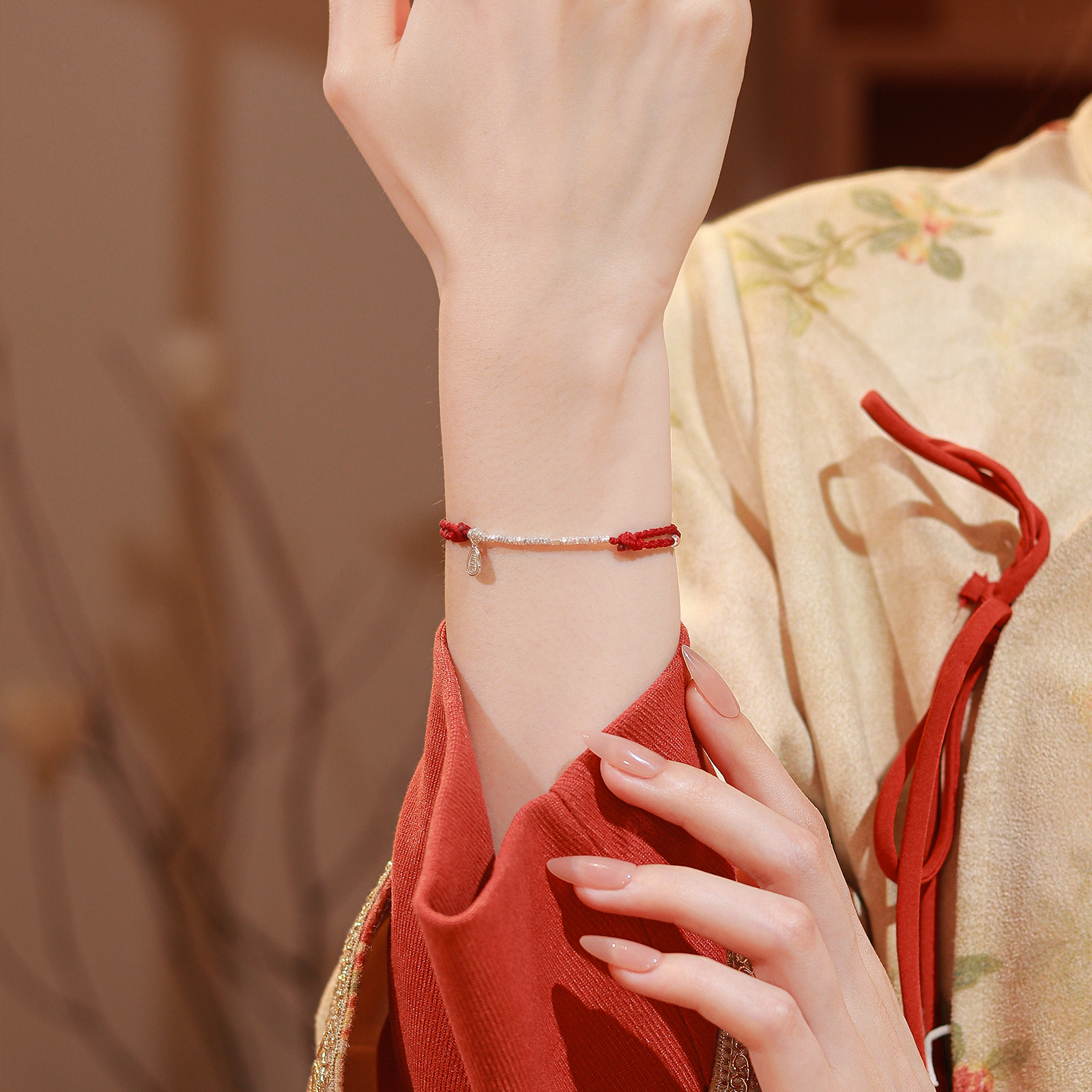 岁福财为晚纯银碎银子手链编织绳女款招财本命年红手绳绝美小众女