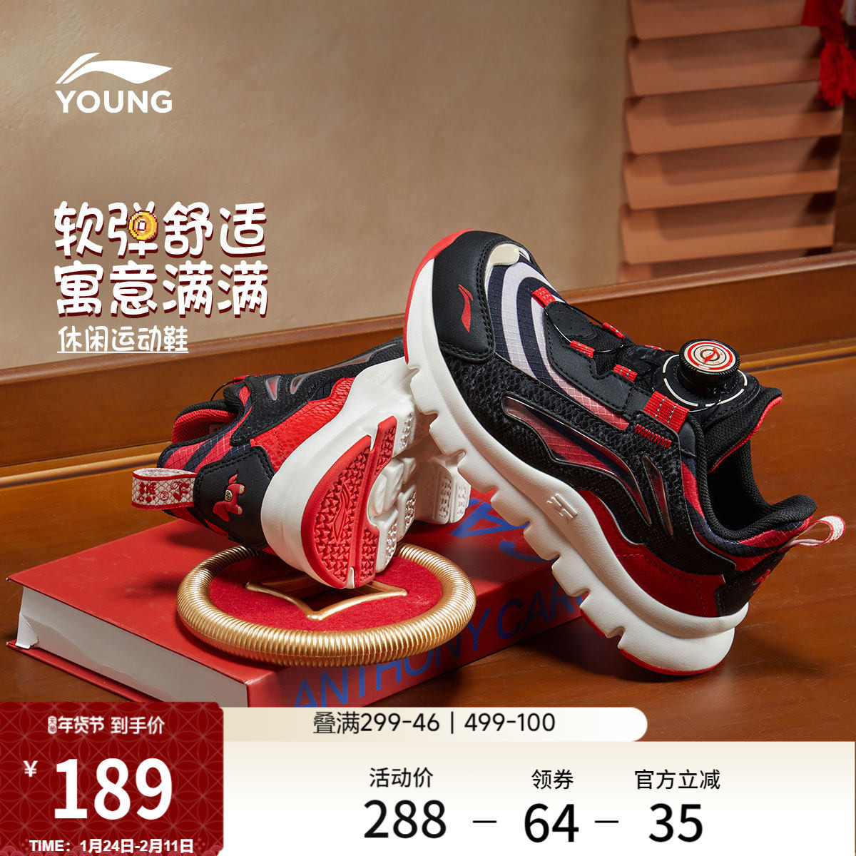 李宁童鞋小极光旋转纽扣运动鞋官方正品男女小童百搭缓震鞋休闲鞋