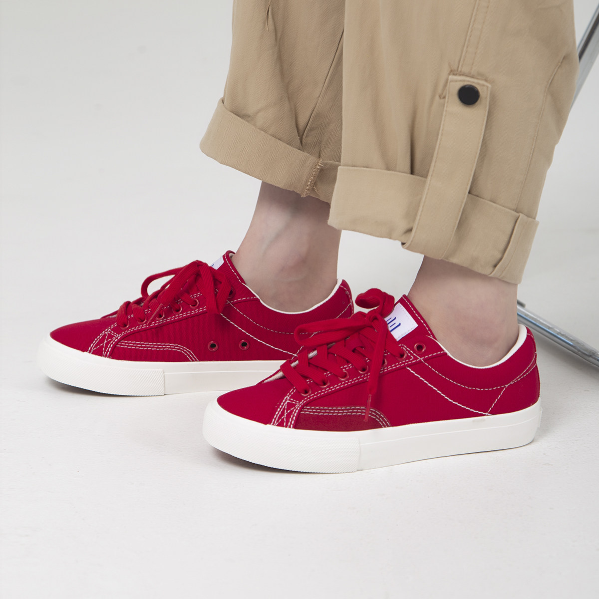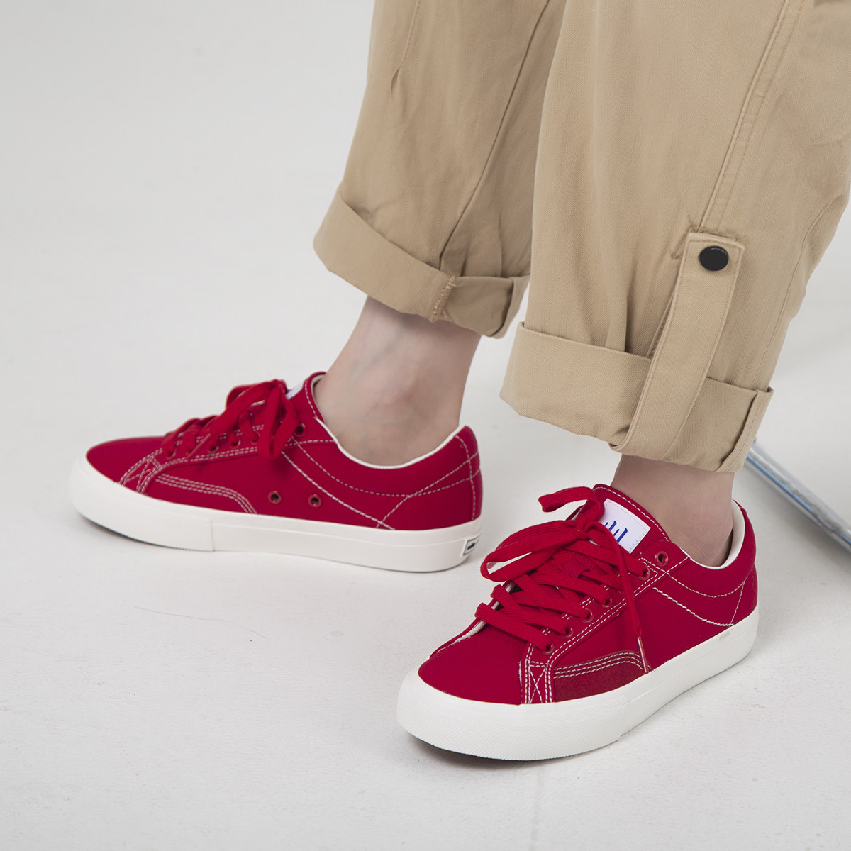 顽刻官方红色帆布拼翻毛皮纯色街头潮流滑板休闲夏季情侣滑板鞋