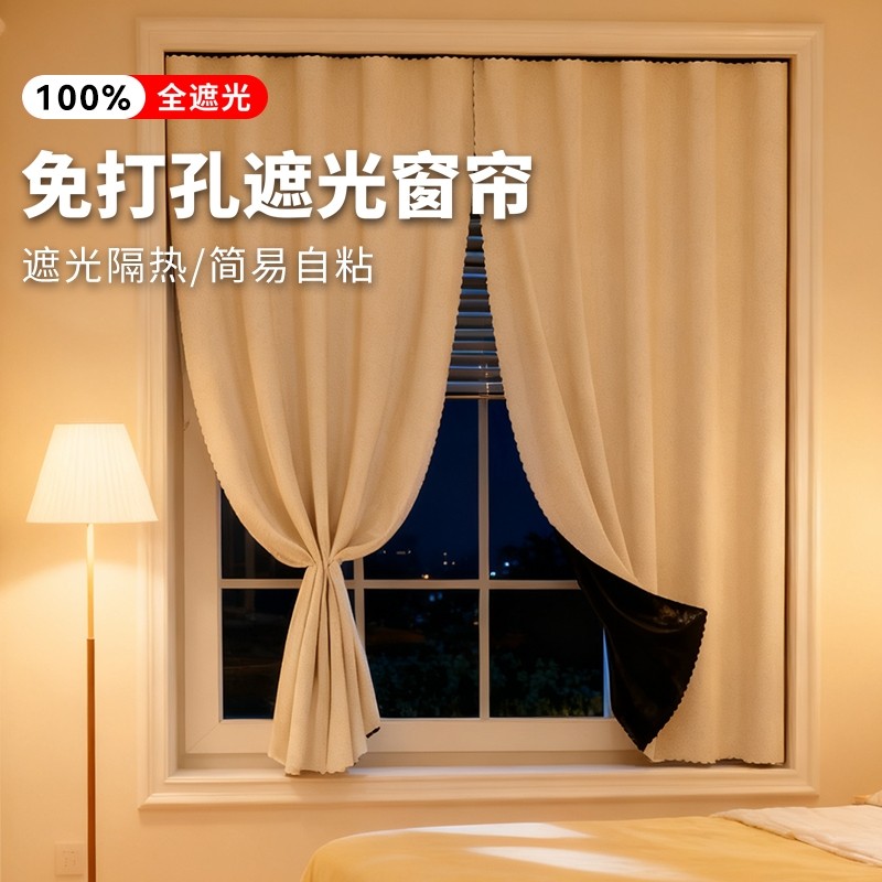 窗帘自粘式防晒遮阳布阳台隔热帘全遮光纯色魔术贴帘子2025新款厚