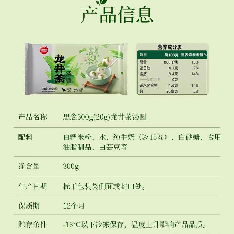 思念龙井茶汤圆黑芝麻汤圆无蔗糖粗粮元宵早餐下午茶甜点速食早餐