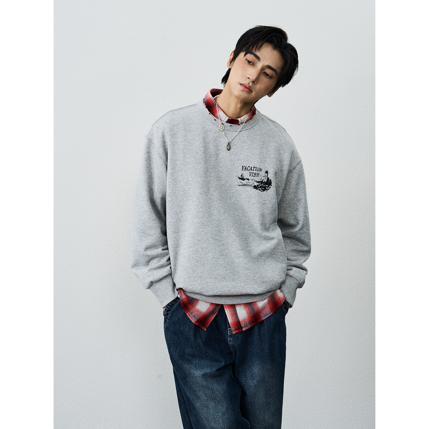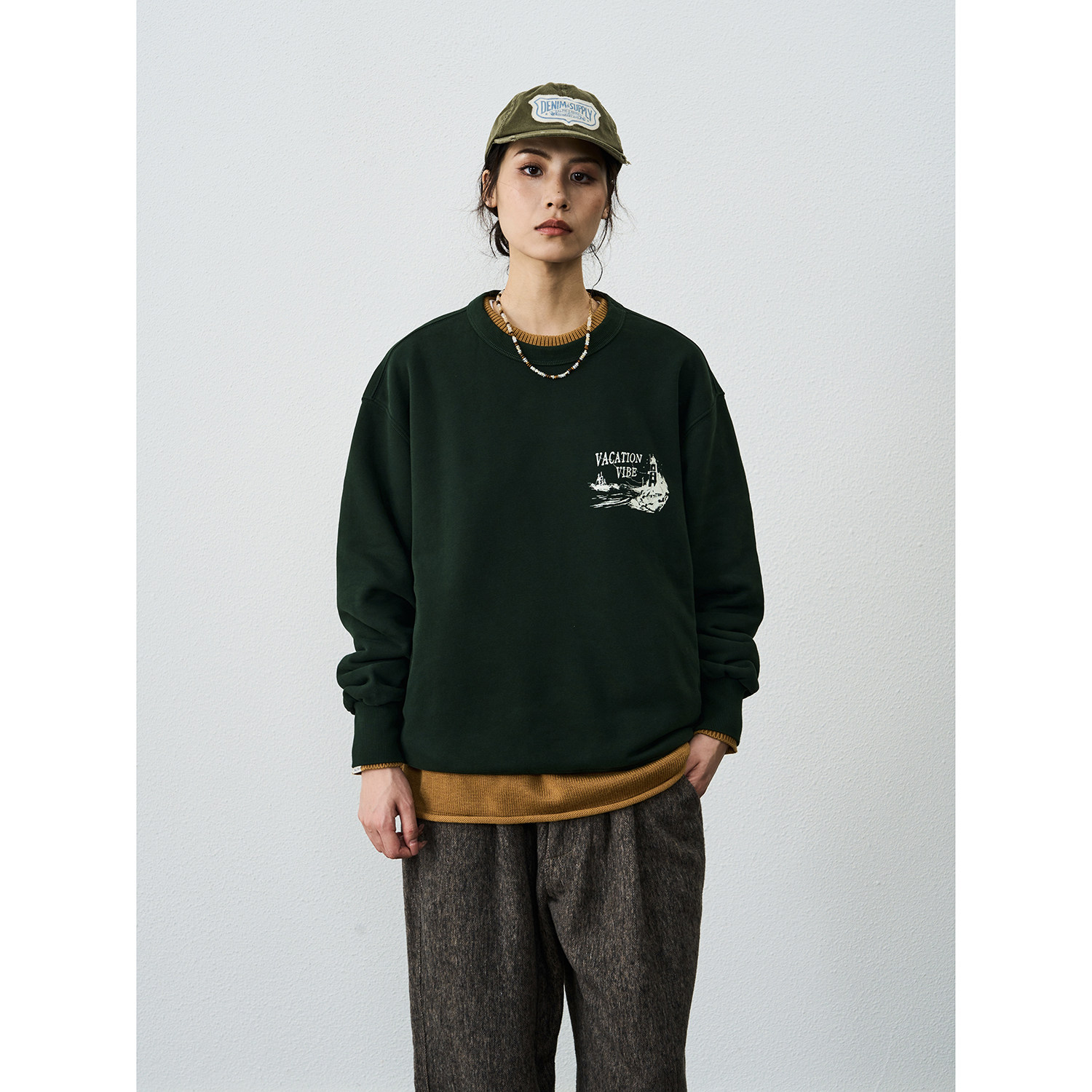 CENLES AW25 秋冬新款美式重磅复古潮牌"假日氛围"抓绒圆领卫衣男