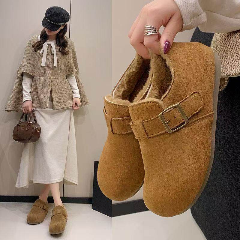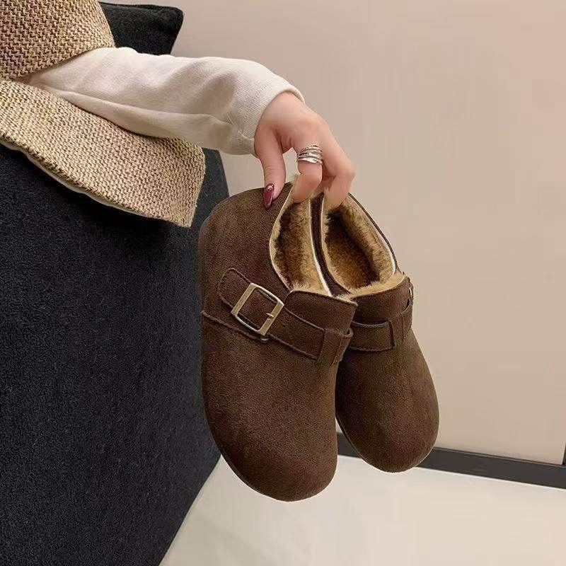 星期六复古加绒棉鞋女冬2025新款皮带扣软底保暖毛毛鞋加厚雪地鞋
