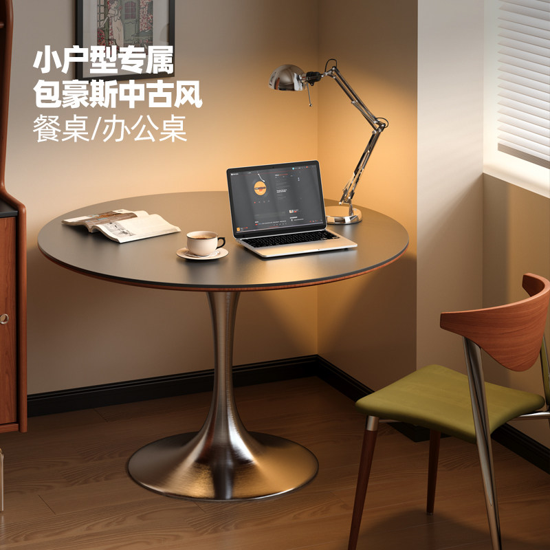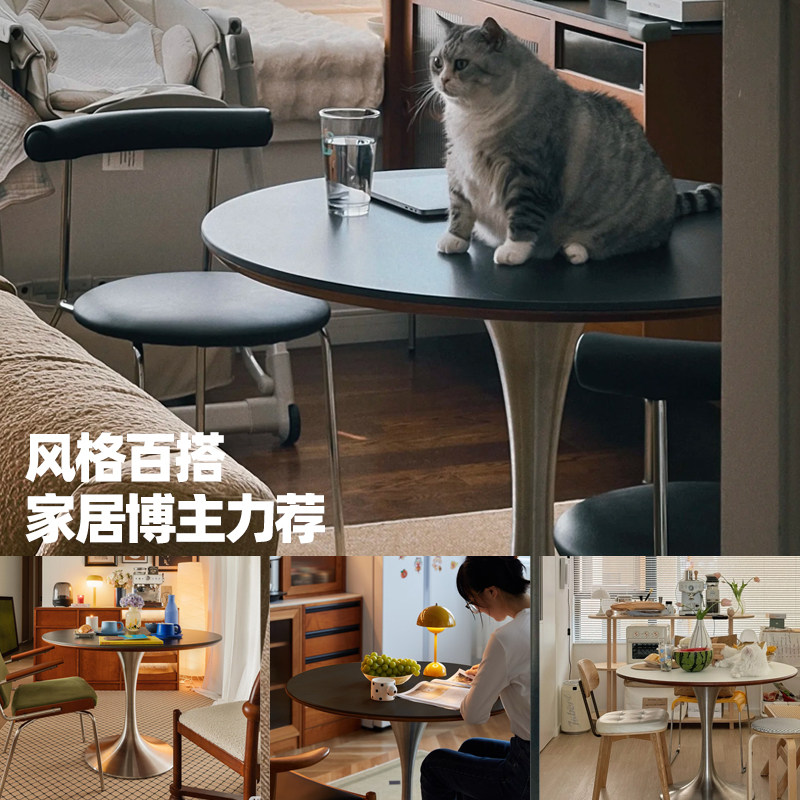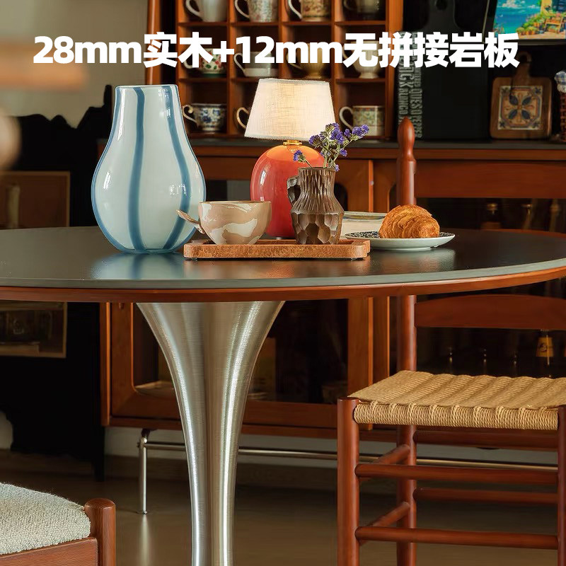 木小咖 中古郁金香圆桌复古不锈钢腿餐桌北欧包豪斯实木岩板饭桌