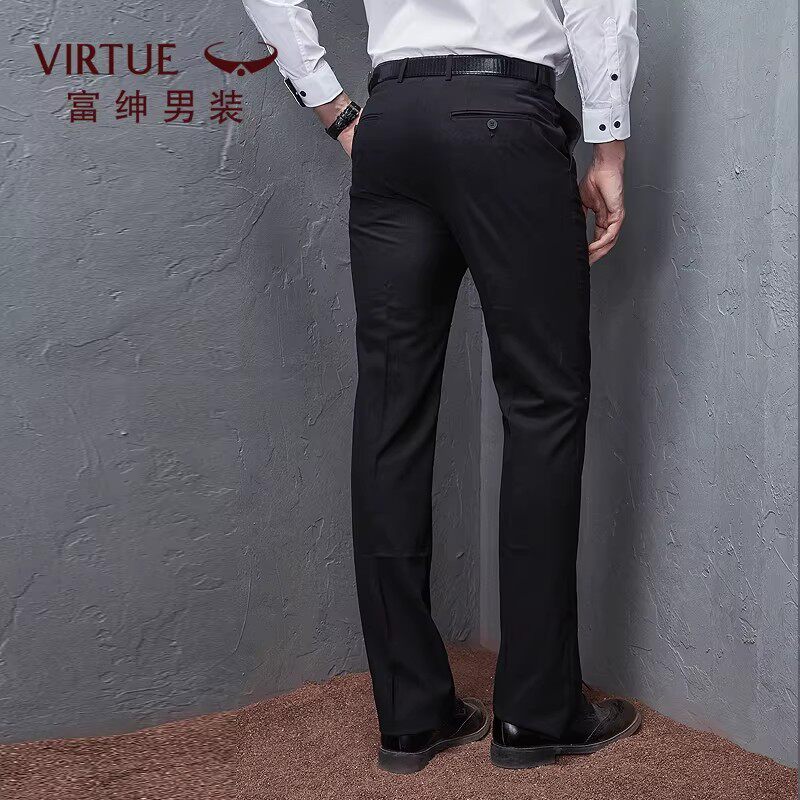 啄木鸟男士秋冬厚款高腰中老年直筒免烫宽松男裤大码西裤中年长裤