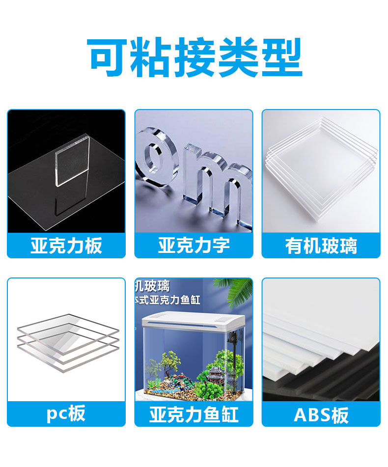亚克力胶水 pmma有机玻璃专用胶水ps防水胶强力透明无痕abs粘鱼缸专用胶亚克力板pc快干胶无影胶新一代粘合剂