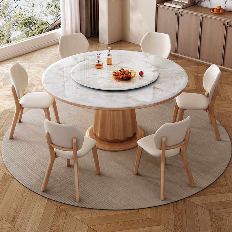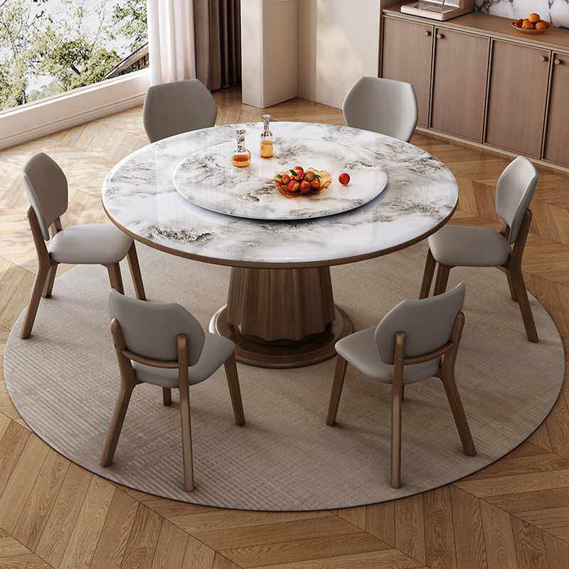 轻奢大理石餐桌椅组合家用小户型实木圆形桌现代简约微晶石吃饭桌