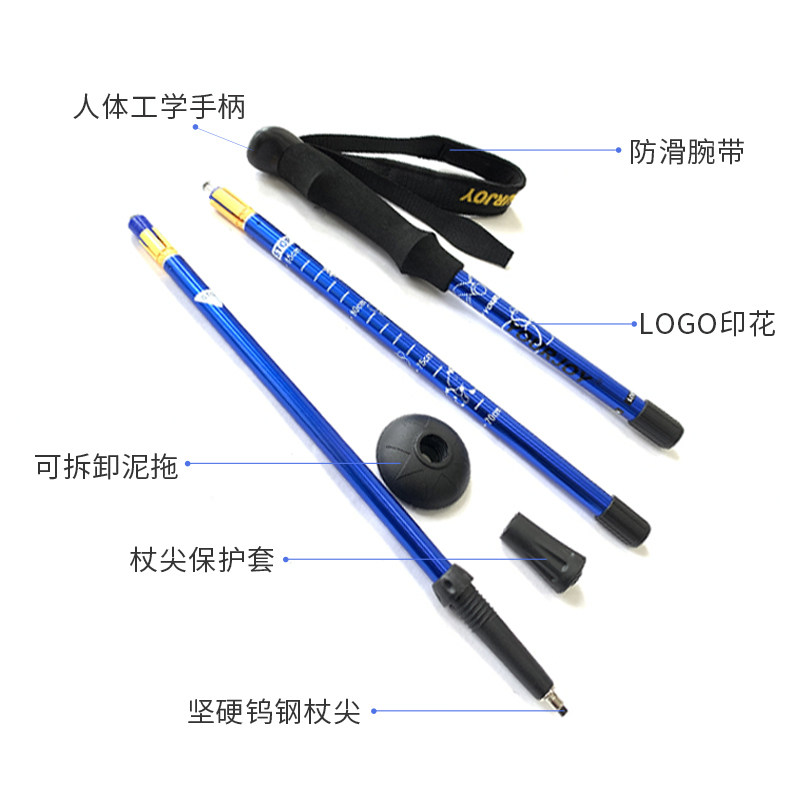 登山杖户外超轻伸缩杖男女爬山徒步装备防滑多功能老人拐杖
