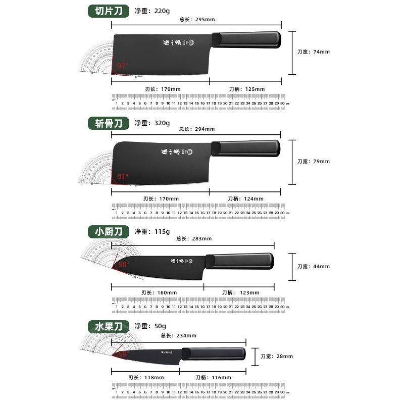 张小泉凌曜刀具厨房套装组合全套菜刀六件套家用切菜切肉厨具菜板