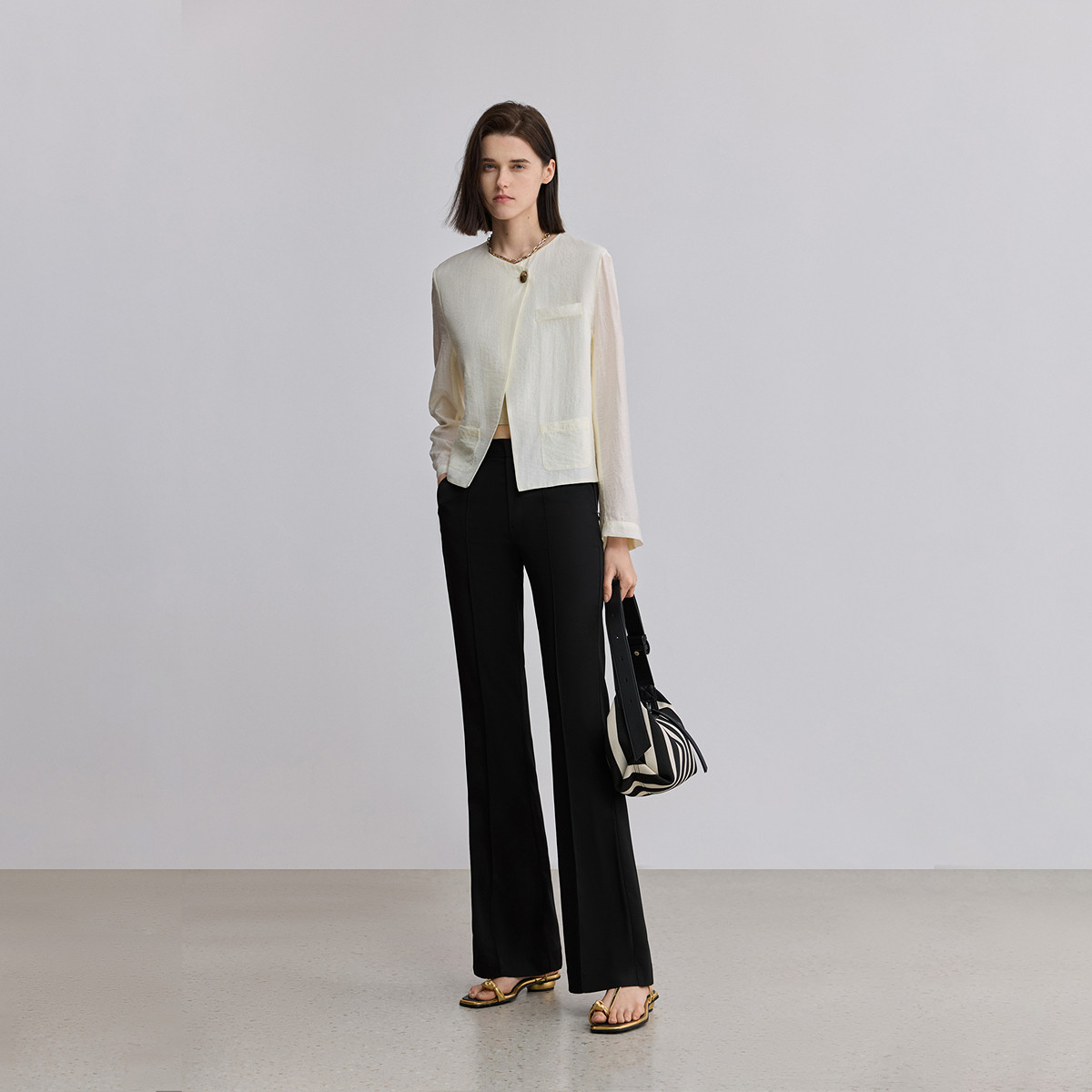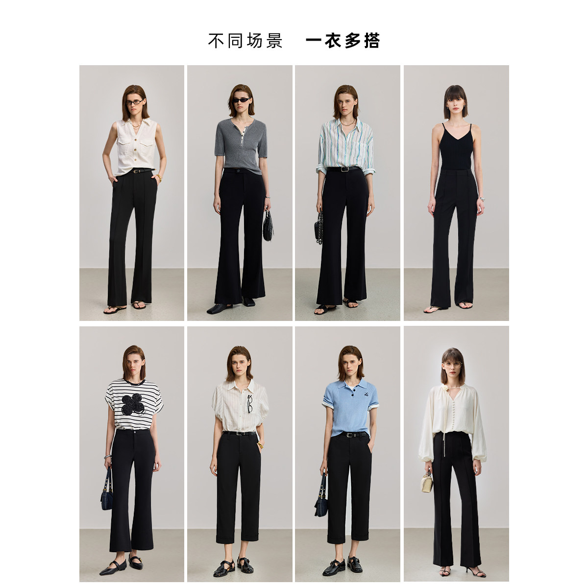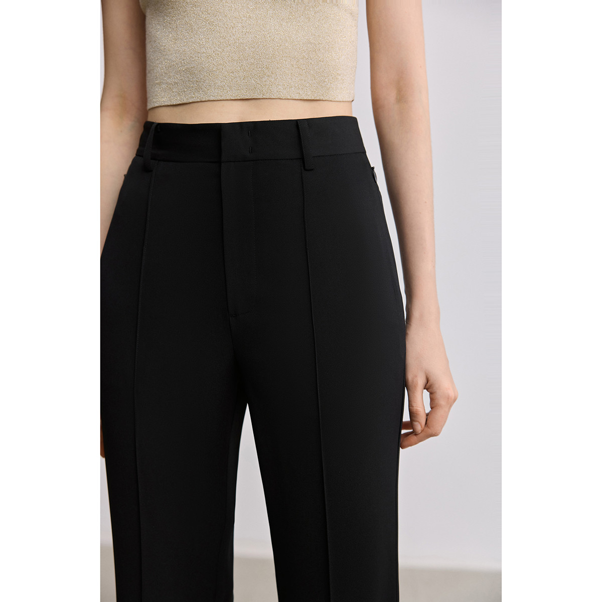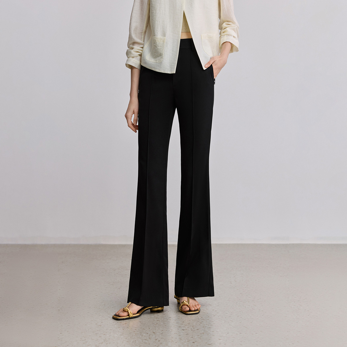 LILY26夏新款女装高腰修身显瘦微喇裤通勤黑色西装裤轻薄休闲长裤