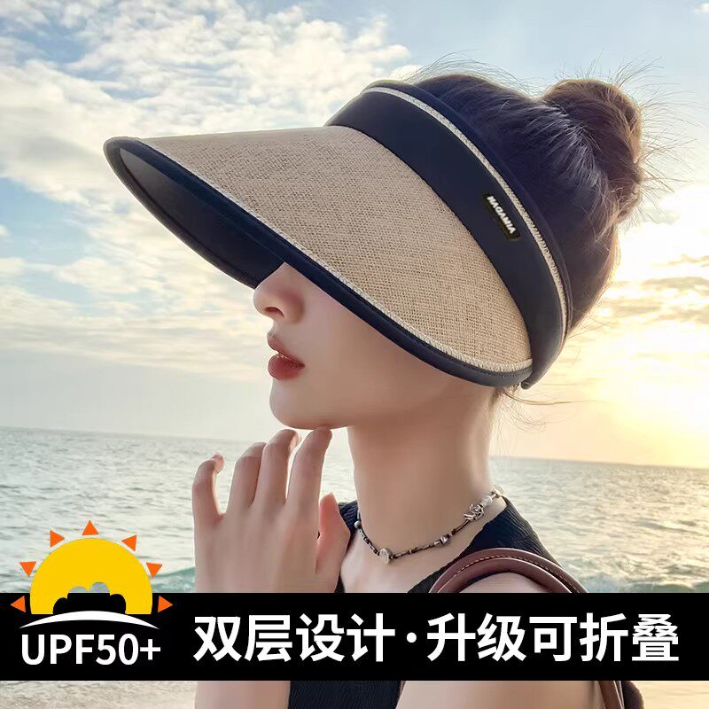 防晒帽女夏季防紫外线贝壳遮阳帽空顶太阳帽子大檐夏天儿童可折叠