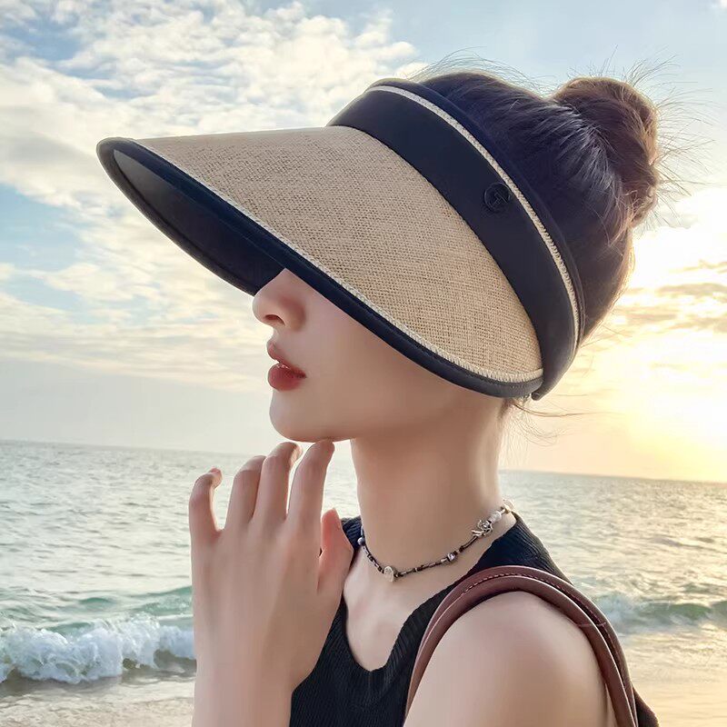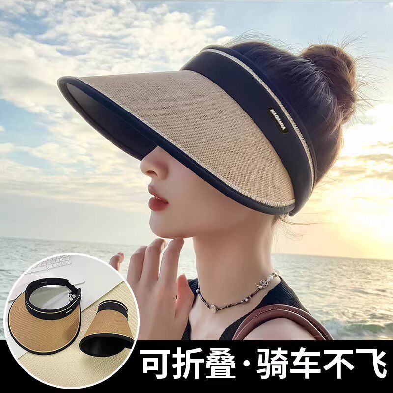 遮阳帽子女夏2026新款可折叠大帽檐防紫外线草编太阳帽空顶防晒帽