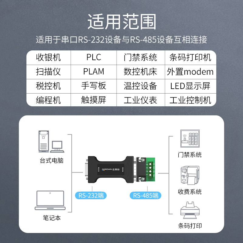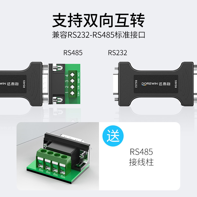 达而稳 RS232转RS485转换器工业级无源隔离转接串口协议模块防雷防浪涌双向互转232转485串口